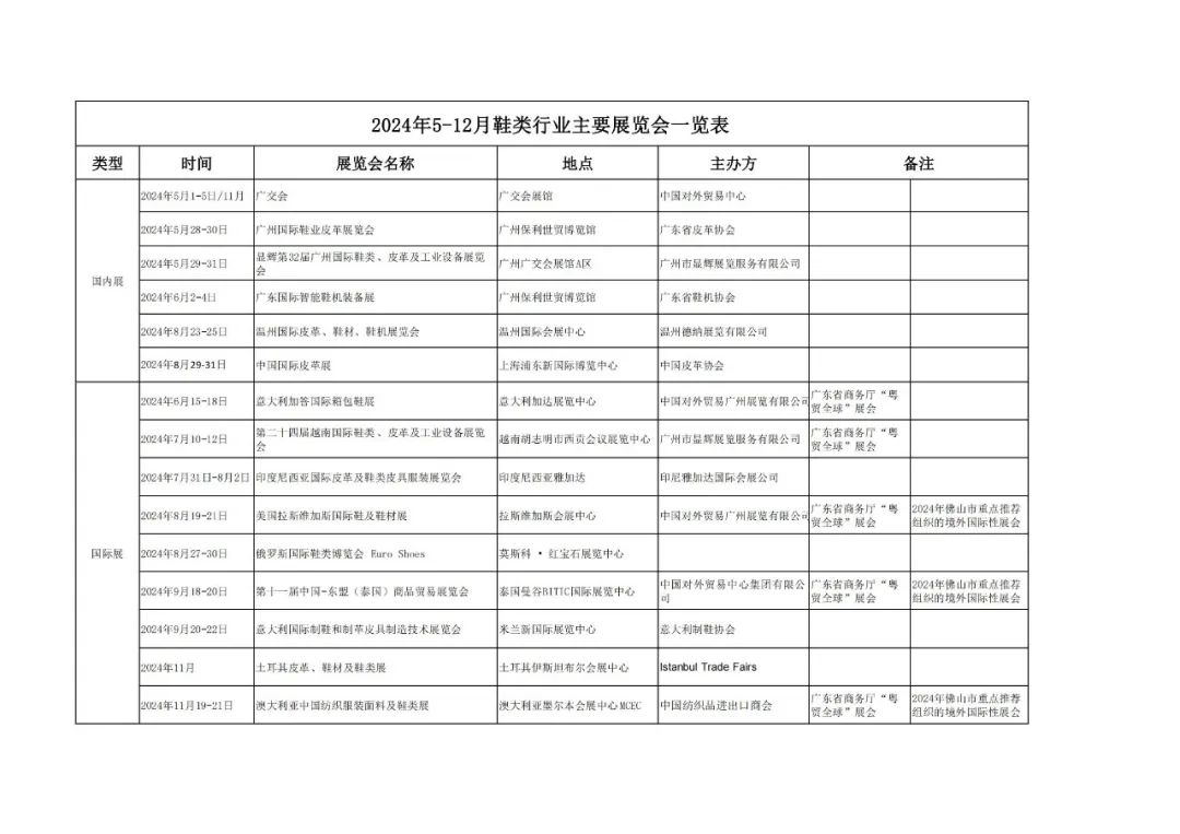 PART 2:2024年5-12月鞋类行业主要展览会一览表