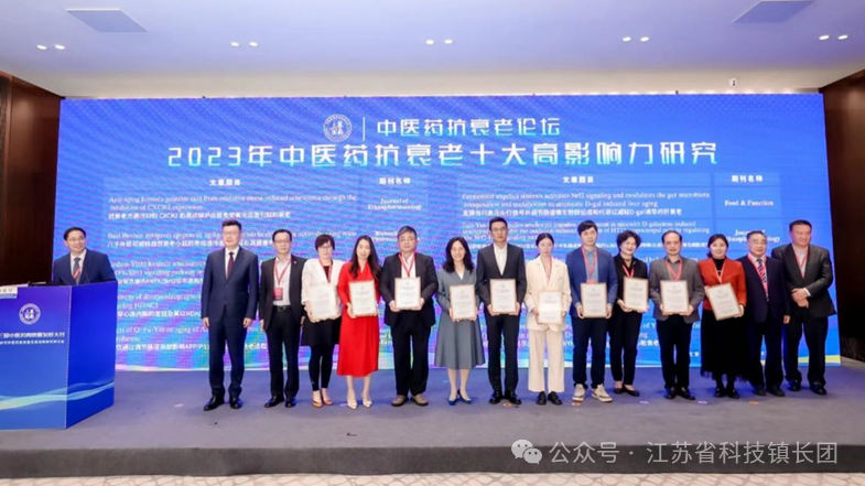 4月10日至11日,由现代中药创制全国重点实验室、天津中医药大学主办,现代中医药海河实验室、国家现代中药创新中心承办的第三届中医药高质量发展大会在浙江乌镇召开。国家中医药管理局党组书记、局长余艳红,国家药品监督管理局副局长赵军宁,张伯礼、李兰娟、朱立国等十余位院士以及近千位专家学者与医药企业参会。苏州市生物医药产业科技镇长团团员、南京中医药大学药学院教授朱悦受邀出席本次盛会,其团队关于健延龄胶囊抗衰老研究成果获得“2023年中医药抗衰老十大高影响力研究”荣誉,中国工程院张伯礼院士、朱立国院士与上海中医药大学季光校长颁奖。