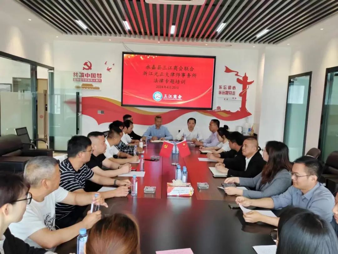 4月25日上午,永嘉县三江商会特邀浙江光正大(永嘉)律师事务所郑清魁、吴文龙、李伟靖三位律师开展法律专题培训讲座,增强企业防范风险和依法维权能力、促进民营经济健康发展。三江商会30余家会员企业代表参加了本次培训讲座。