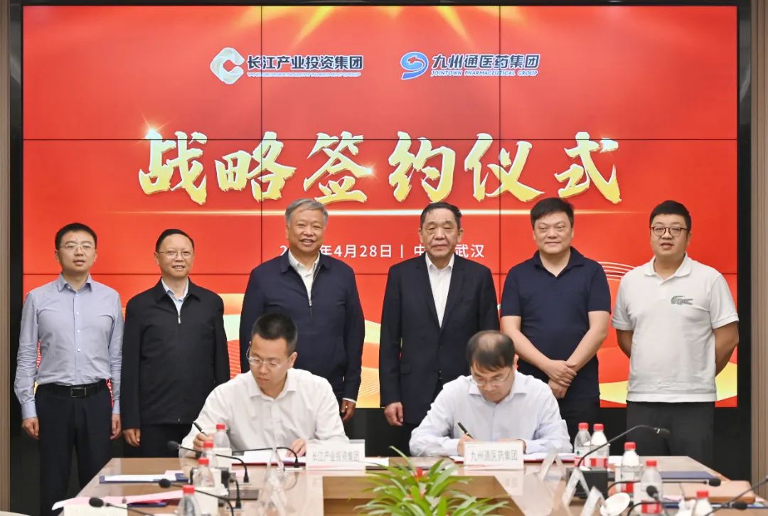 4月28日,长江产业集团与九州通医药集团签订战略合作协议,双方将围绕生命健康产业发展、基金投资、资本市场服务、人才培育等方面开展全面合作。九州通医药集团名誉董事长刘宝林,集团党委书记、董事长黎苑楚出席签约仪式并座谈。