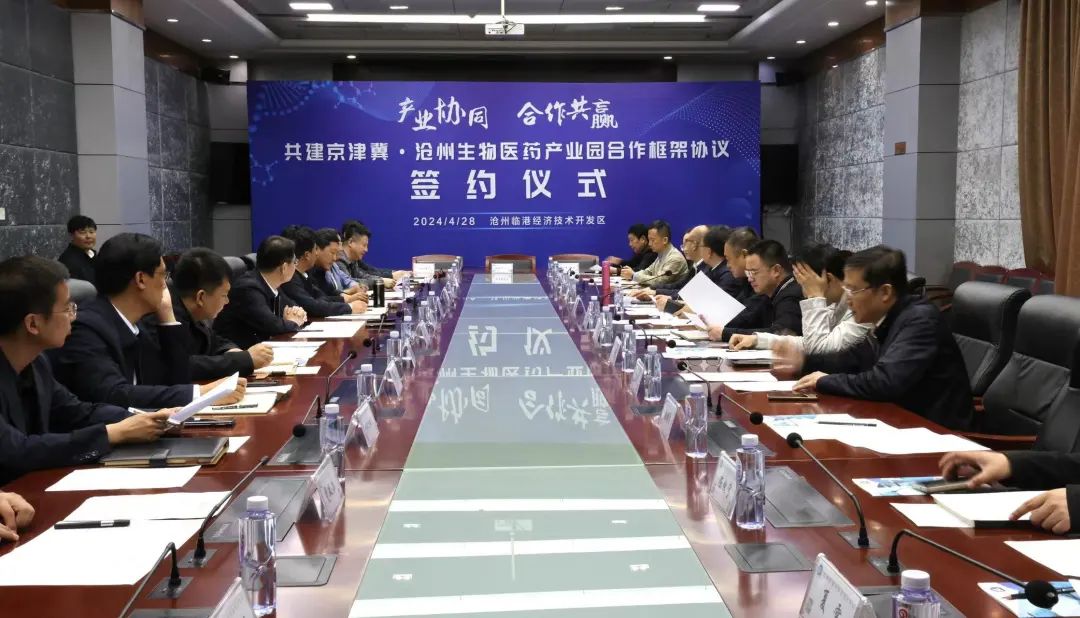 4月28日,京津冀三地工信部门在沧州临港经济技术开发区签订共建京津冀·沧州生物医药产业园合作框架协议,共同构筑生物医药领域“高精尖”产业结构,积极探索产业合作新模式、新机制,打造京津冀医药联通大市场。