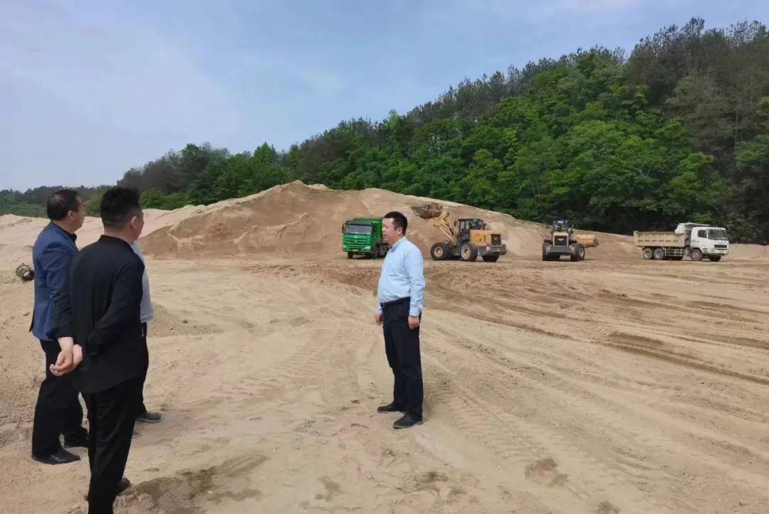 县矿产资源管理工作领导小组办公室主任胡永祥带队到胜利镇翁家畈、洗儿岭河道现场调研,研究河道清障资源处理方案,集团副总经理杨金龙、资源开发公司总经理徐勇及相关人员参加。