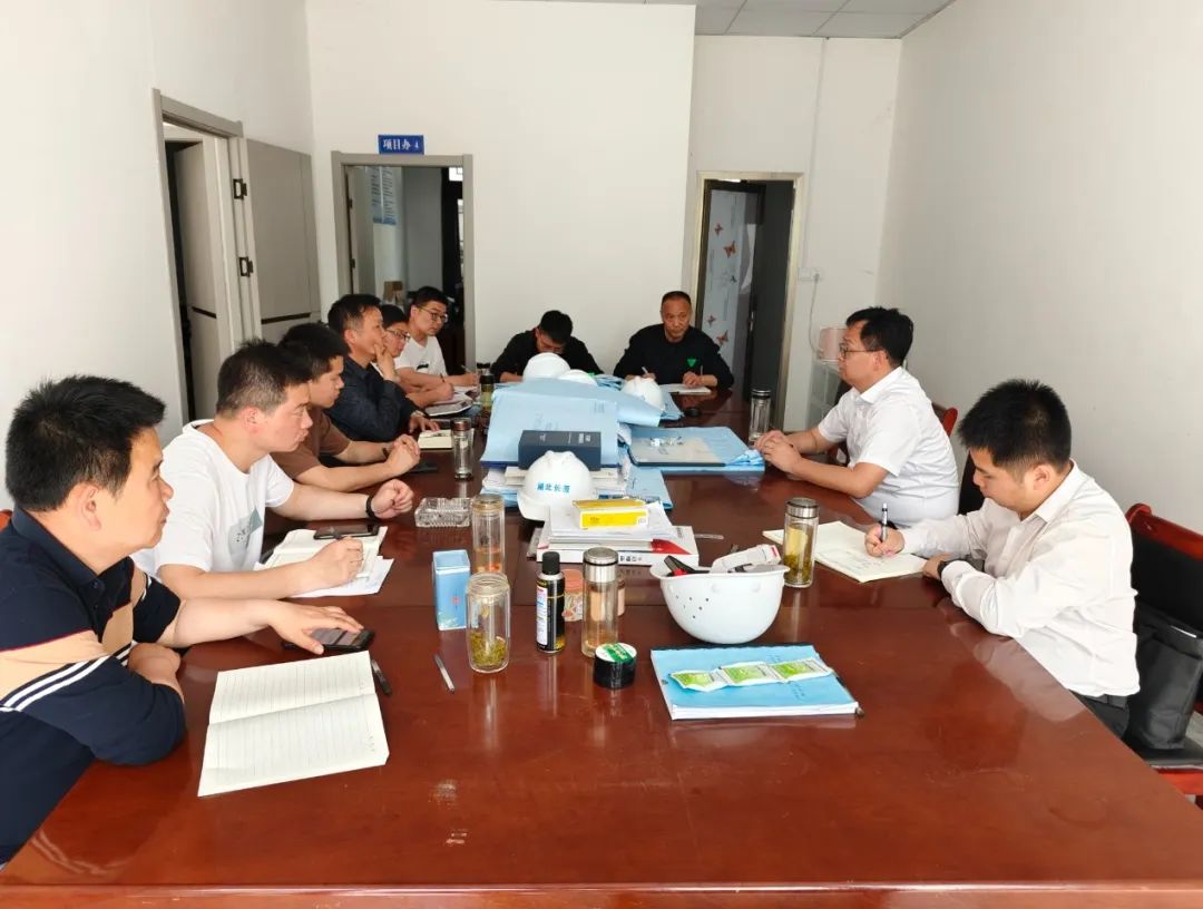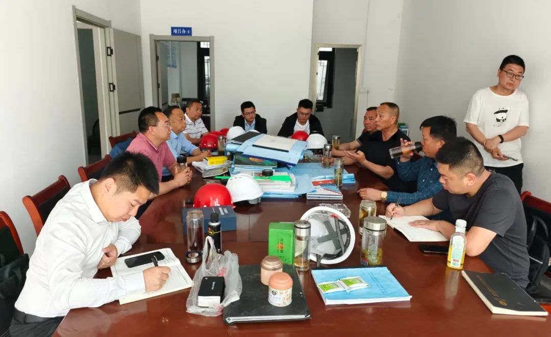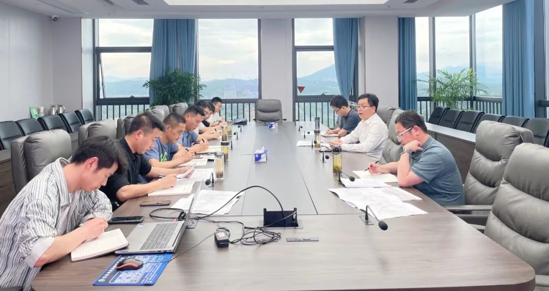 董事长杨天平、总工程师张博组织建设管理部、开源置业公司相关人员研究月亮半岛、两河项目推进工作。