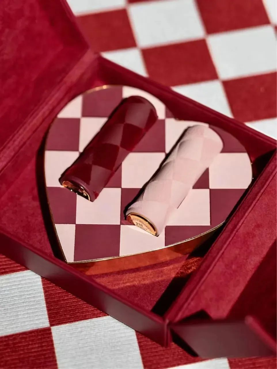 推出的限定版【棋盘格】小蛮腰系列,红/粉丝绒壳配棋盘形状膏体,一个字绝!