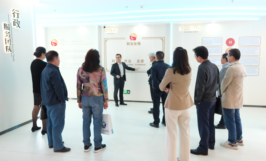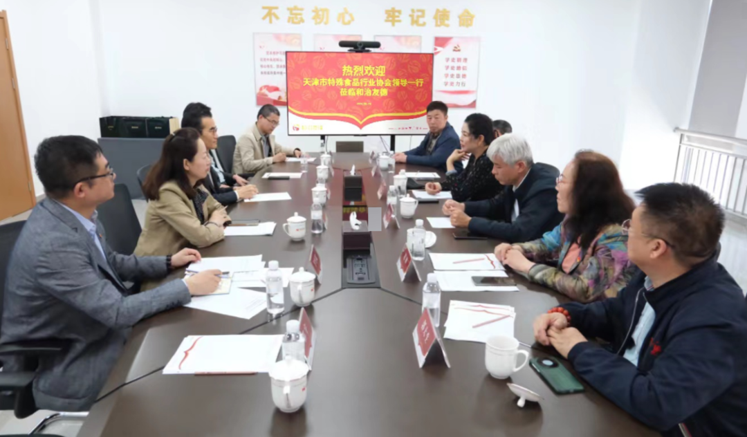 2024年4月24日,天津市市场监管委特殊食品安全监督管理处原处长高培、天津市特殊食品行业协会党支部书记赵丽、会长宋新波、副会长郭大生、副会长张泽生、副会长赵永泉、副秘书长景立等协会领导一行来到位于天津东丽的和治友德全球运营总部走访调研,天津和治友德制药有限公司董事长韩金明,天津和治友德制药有限公司副总裁、天津市特殊食品行业协会常务副会长兼秘书长郅群热情接待协会领导一行。