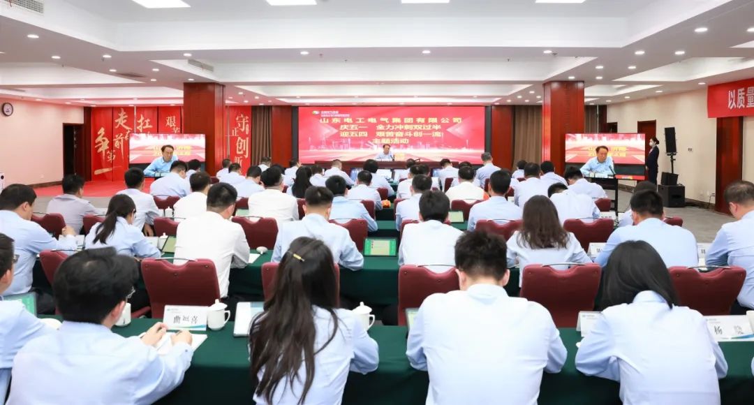 4月28日,山东电工电气举办“庆五一、全力冲刺双过半 迎五四、艰苦奋斗创一流”主题活动,旨在激发广大干部员工和团员青年昂扬斗志,践行“四利”工作标准,艰苦奋斗、保持过硬作风,激发“三大内生动力”,全力推进“六突破一攻坚”重点任务。党委书记、董事长赵永志出席,讲授《持续发扬雷锋精神 坚持“四利”工作标准 为开启集团高质量发展新征程而团结奋斗》主题团课,代表集团党委向广大员工和团员青年致以诚挚的节日问候,为集团五四先进代表颁奖,并为七个板块青年突击队代表授旗。党委委员、总会计师陆飞主持活动。