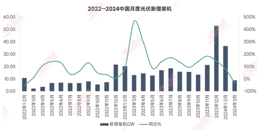 这是两年以来3月国内光伏新增装机首次出现同比下滑。