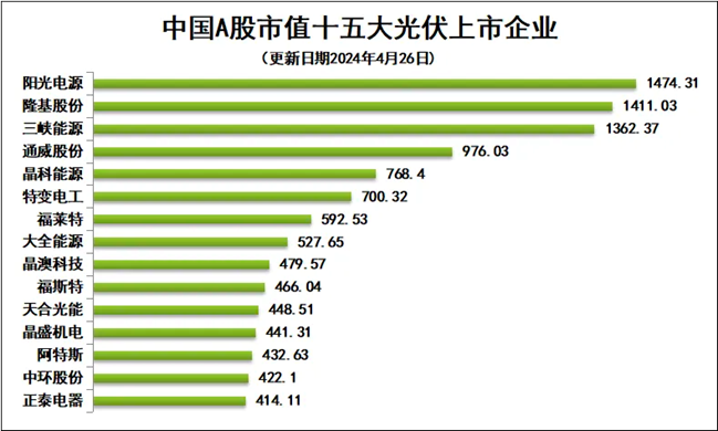 原来的千亿市值光伏公司队伍已经彻底大洗牌。截至4日26日收盘,市值过千亿的光伏企业仅剩下阳光电源和隆基绿能两家。