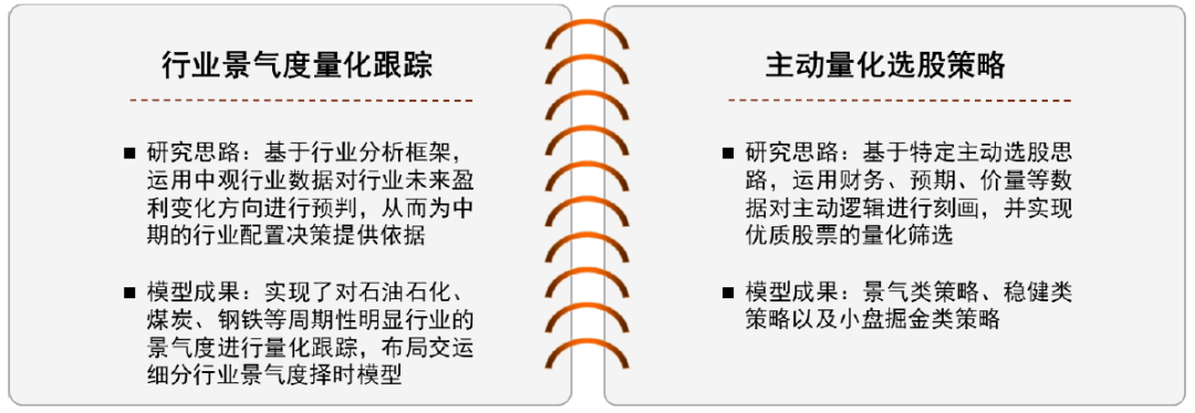 中金量化及ESG的基本面量化研究体系分为两类,即行业景气度与主动量化选股策略。本篇报告隶属于行业景气度研究,行业景气度研究基于行业分析框架,运用中观行业数据对行业未来盈利变化方向进行预判,从而为中期的行业配置决策提供依据。