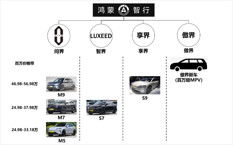 鸿蒙智行汽车矩阵(里斯汽车事业部根据网络公开信息整理)