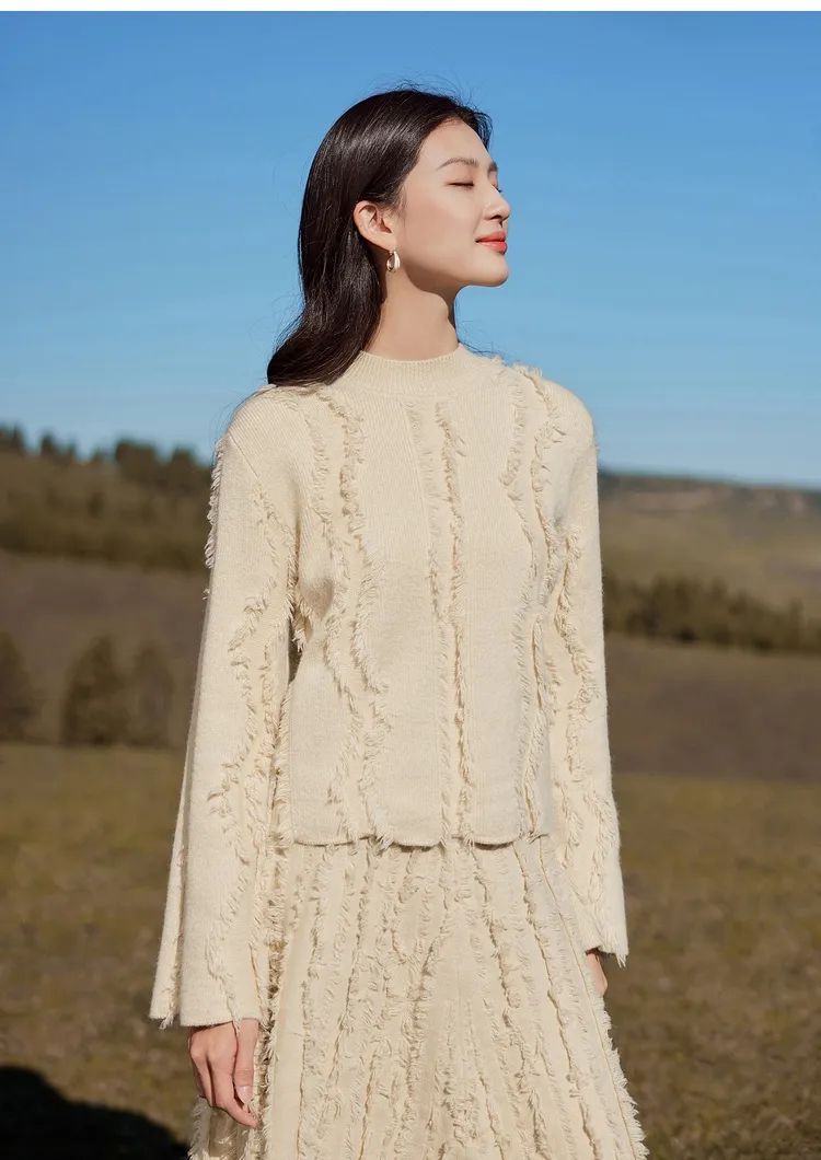 羊毛纤维柔软而富有弹性,且柔软。羊毛制品有手感丰满、保暖性好、穿着舒适等特点,在质感和质量上是纺织业的一大进步。
