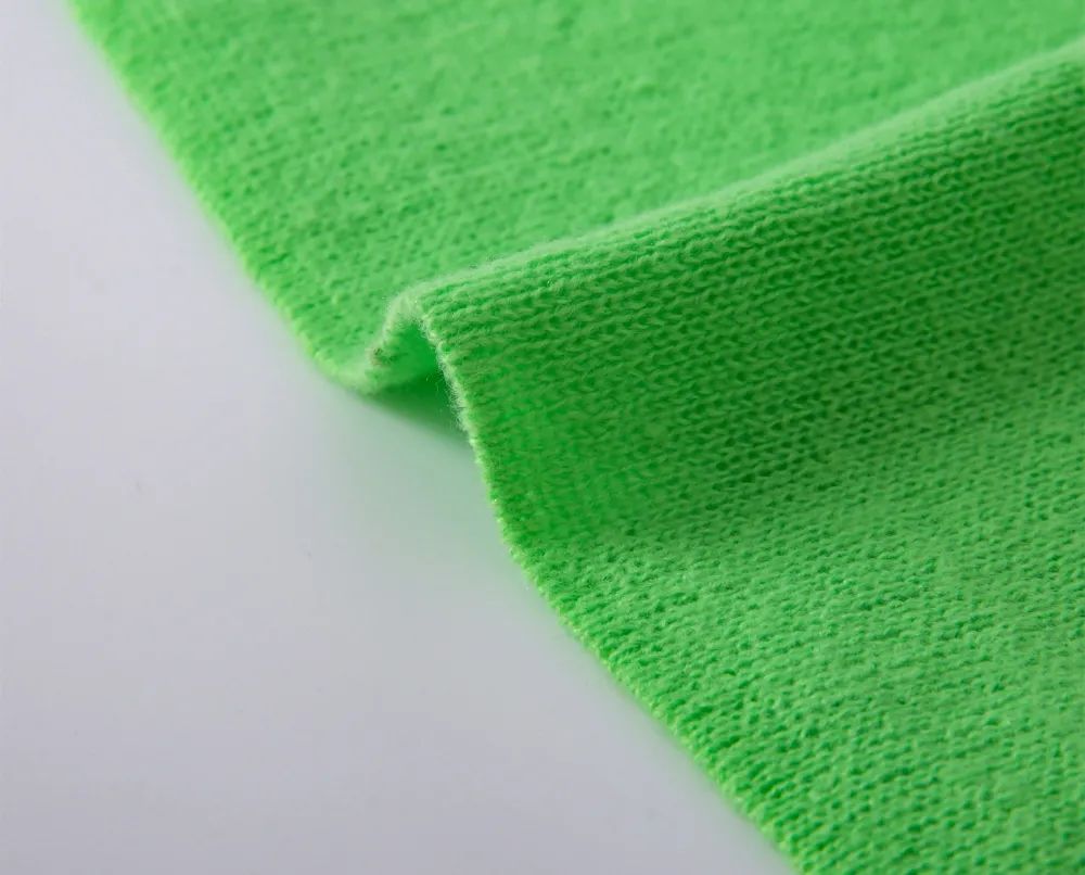 色泽艳丽,富有弹性,亲肤感强,织物手感微蓬柔软,质地轻盈保暖极强,衣服成型挺括,经久不变。