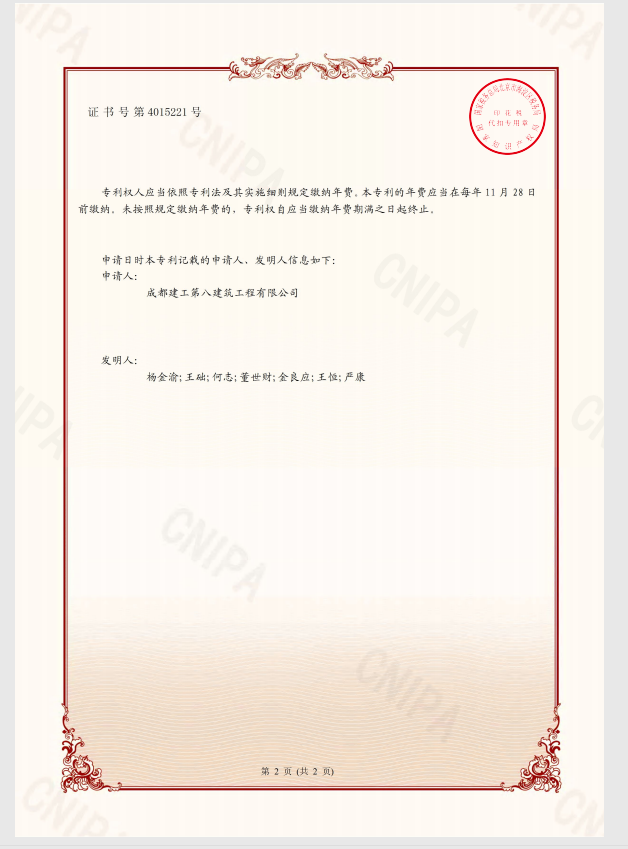 据悉,传统工艺复杂、施工难度大、耗费材料多,且存在渗漏的风险,此项发明专利通过在地下室外墙主体结构施工时预留钢筋混凝土墙垛,然后进行防水及保护层施工及钢筋混凝土挡土墙施工,将混凝土墙垛作为施工挡土墙的支撑,提高了挡土施工的安全性,较好地解决了地下室外墙肥槽分区回填处土方回填问题。此外,由于在完成地下室外墙主体结构剪力墙施工的同时可完成小墙垛的施工,无需二次增加墙垛,可提前对地下室顶板进行场地的合理布置,减少二次搬运,也避免了因防水无法闭合出现的渗漏风险,不仅节省能源、降低损耗,有效缩短了工期、节约了成本,工程总体质量也得到了较大提高,在质量、安全、进度、成本、环保等方面均受到了业主单位的广泛好评。