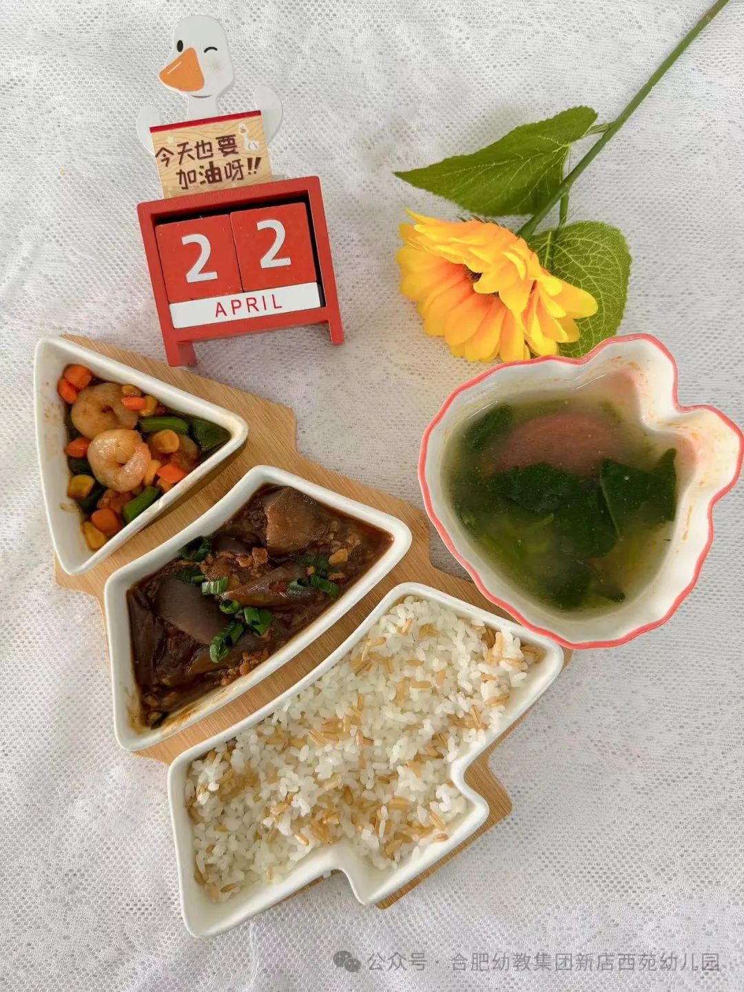 燕麦米饭、三色虾仁、肉末茄子、菠菜猪肝汤