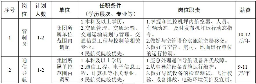 1 | 管制员 | 集团所属单位范围内调配 | 1-2 |