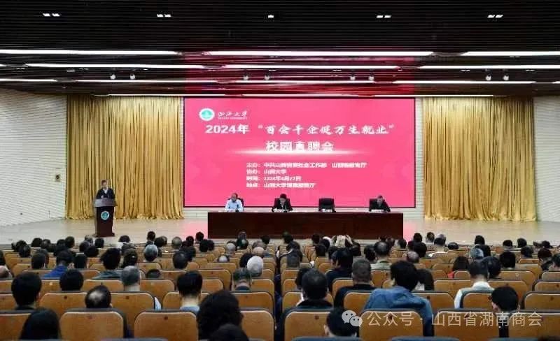 为全面落实党中央、国务院和省委省政府关于高校毕业生就业创业工作的决策部署,全力促进高校毕业生高质量充分就业,4月27日,由省委社会工作部、省教育厅主办,山西大学协办的2024年“百会千企促万生就业”校园直聘会暨全省性行业协会商会工作部署会在山西大学坞城校区举办。省委社会工作部部长张韬出席并讲话,省教育厅厅长马骏出席,山西大学党委书记王仰麟出席并致辞,省委社会工作副部长宋海兵主持。山西省内蒙古商会副秘书长裴晓忠及370多家全省性行业协会商会会长,130家企业负责人和省内高校千余名2024届毕业生参加。
