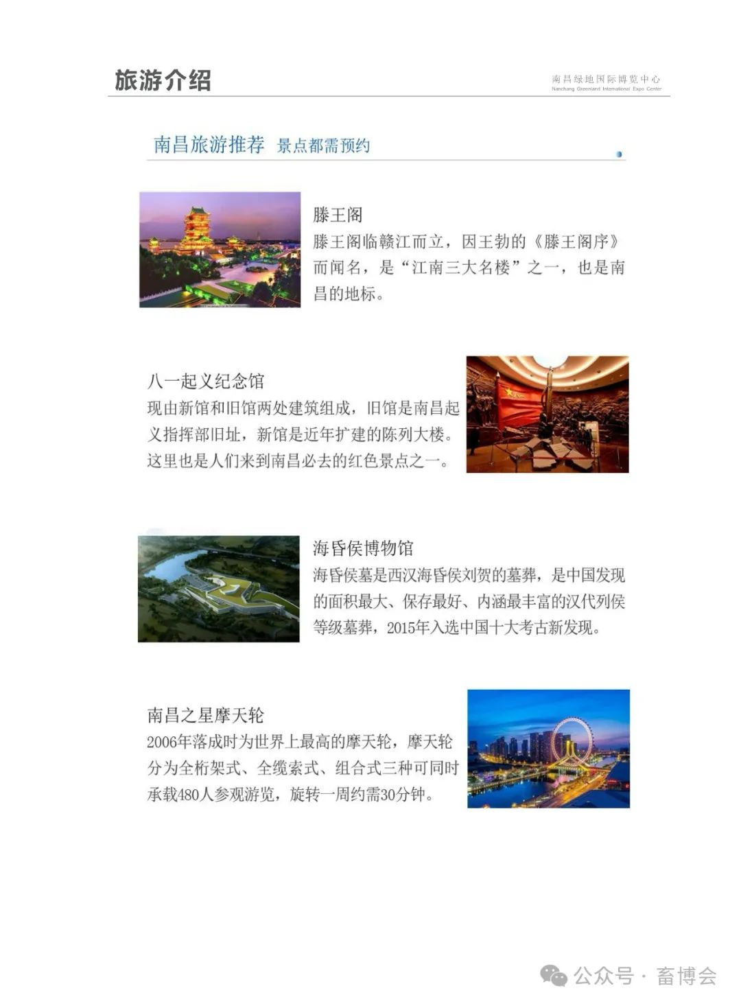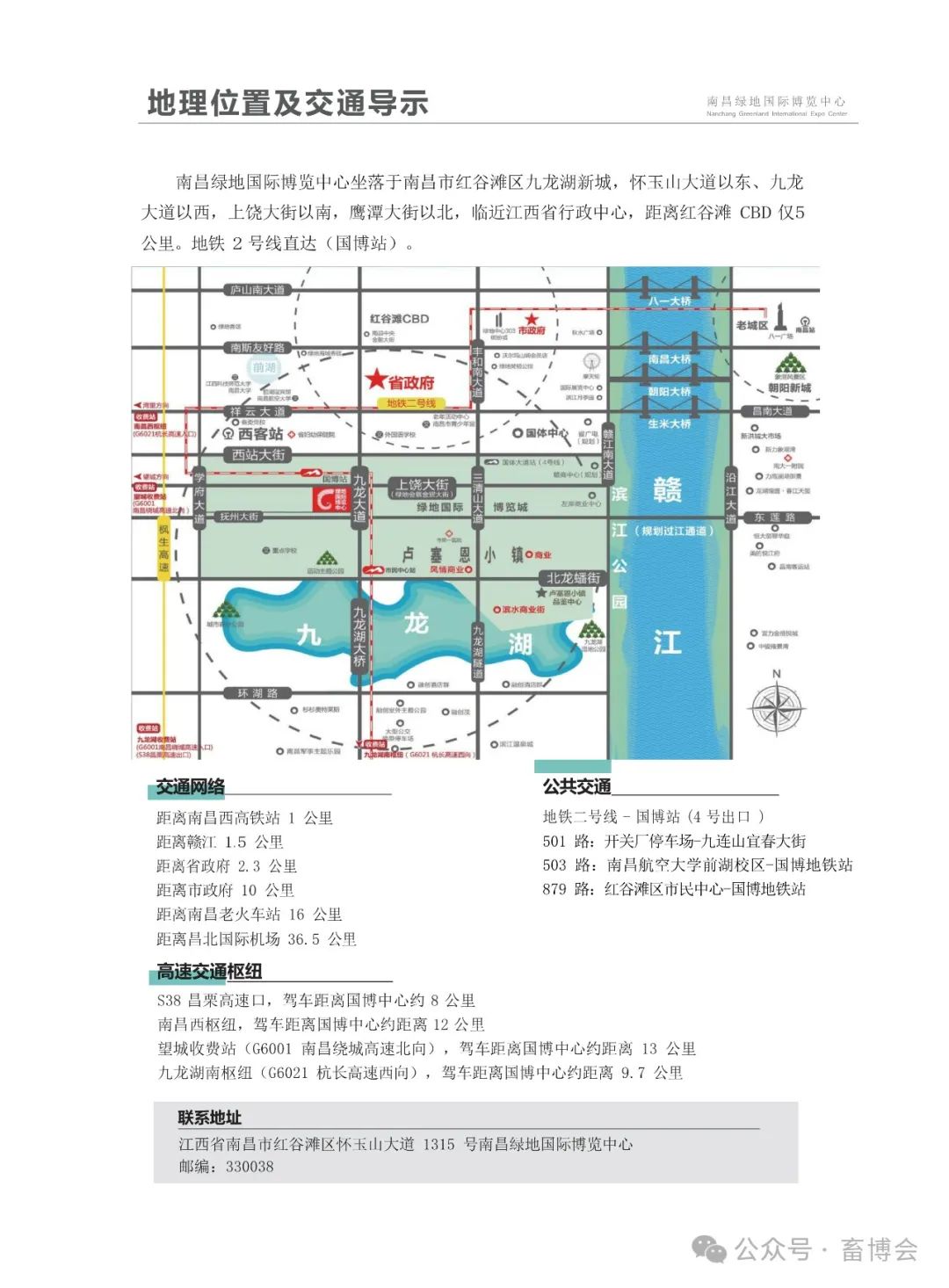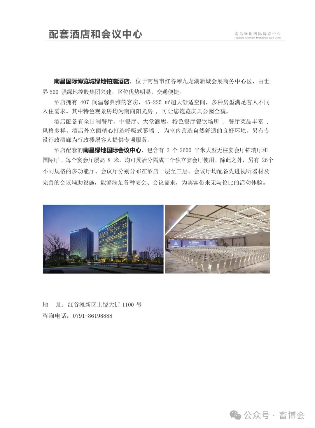 2024年5月18-20日,第二十一届(2024)中国畜牧业博览会(以下简称“畜博会”)将在江西省南昌市绿地国际博览中心隆重举办。现将畜博会交通、住宿、餐饮、旅游等相关信息发布,以便大家查找与参考。希望大家有一个美好的参观 、参会体验。