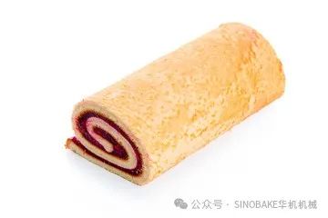 打发的浆料由成型机挤出后均匀地平铺在隧道炉的实心钢带上烘烤,出炉后根据客户的需求涂抹不同风格的奶油或果酱。其生产过程是:混料、打发、涂布、烘烤、分切、涂抹、成型、包装。