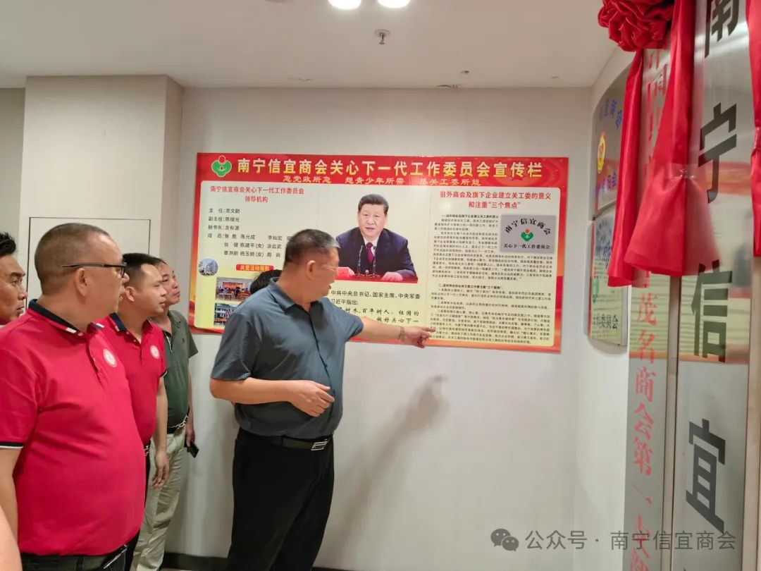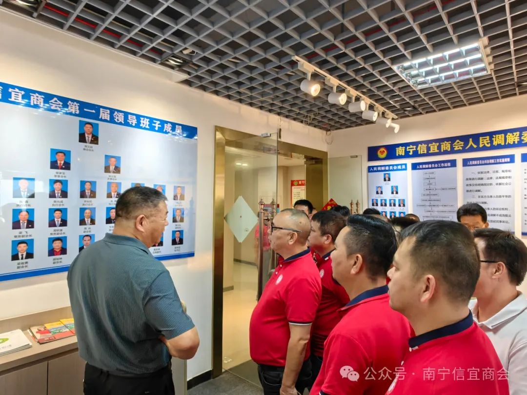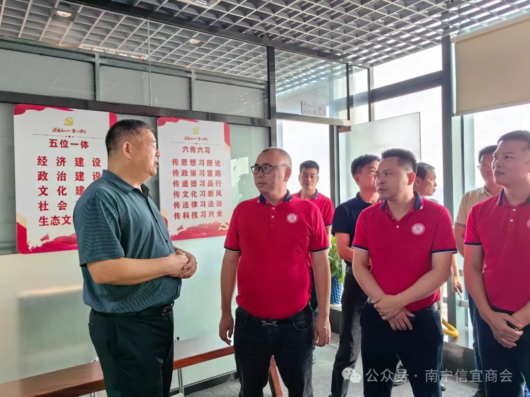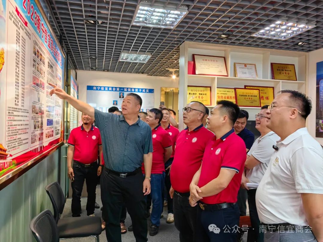 在信宜商会会长周文尉带领下,高州商会一行首先参观了信宜商会成立关工委的宣传栏、商会党建示范墙、党员活动室、商会文化建设长廊、办公场所等。