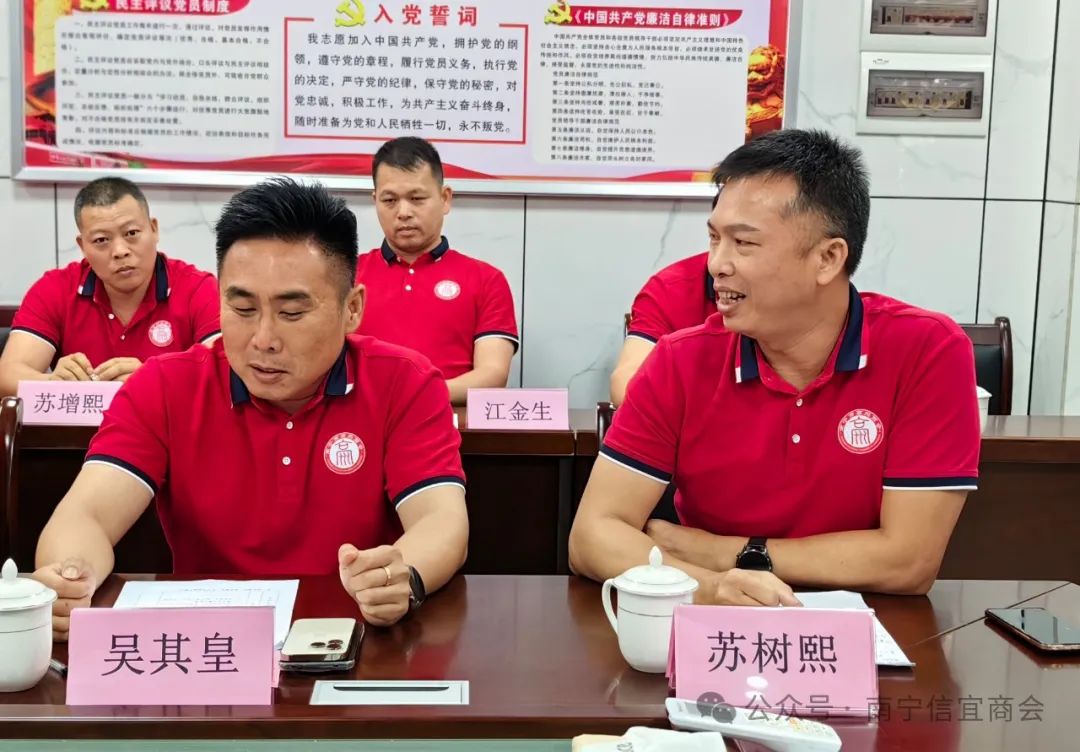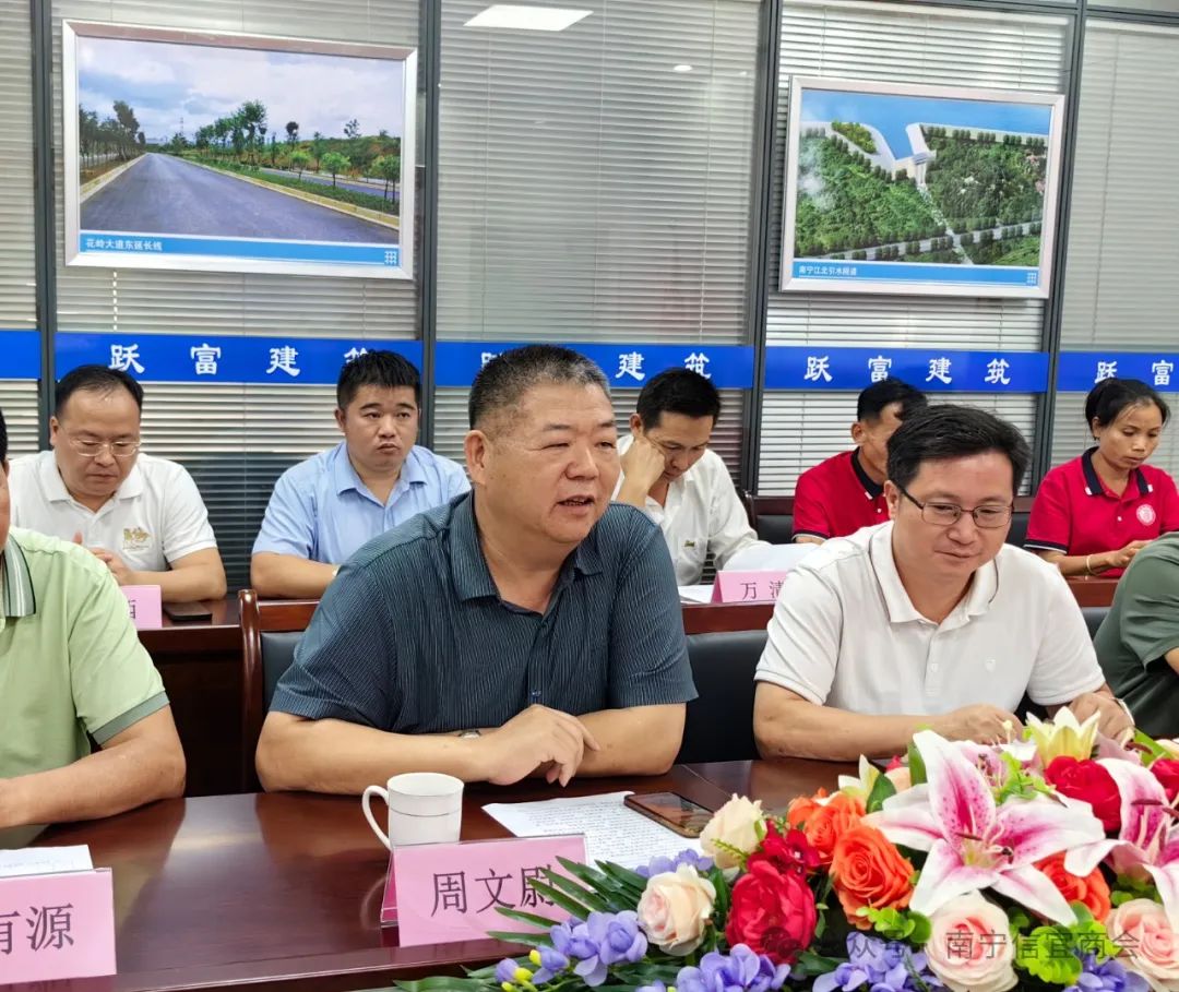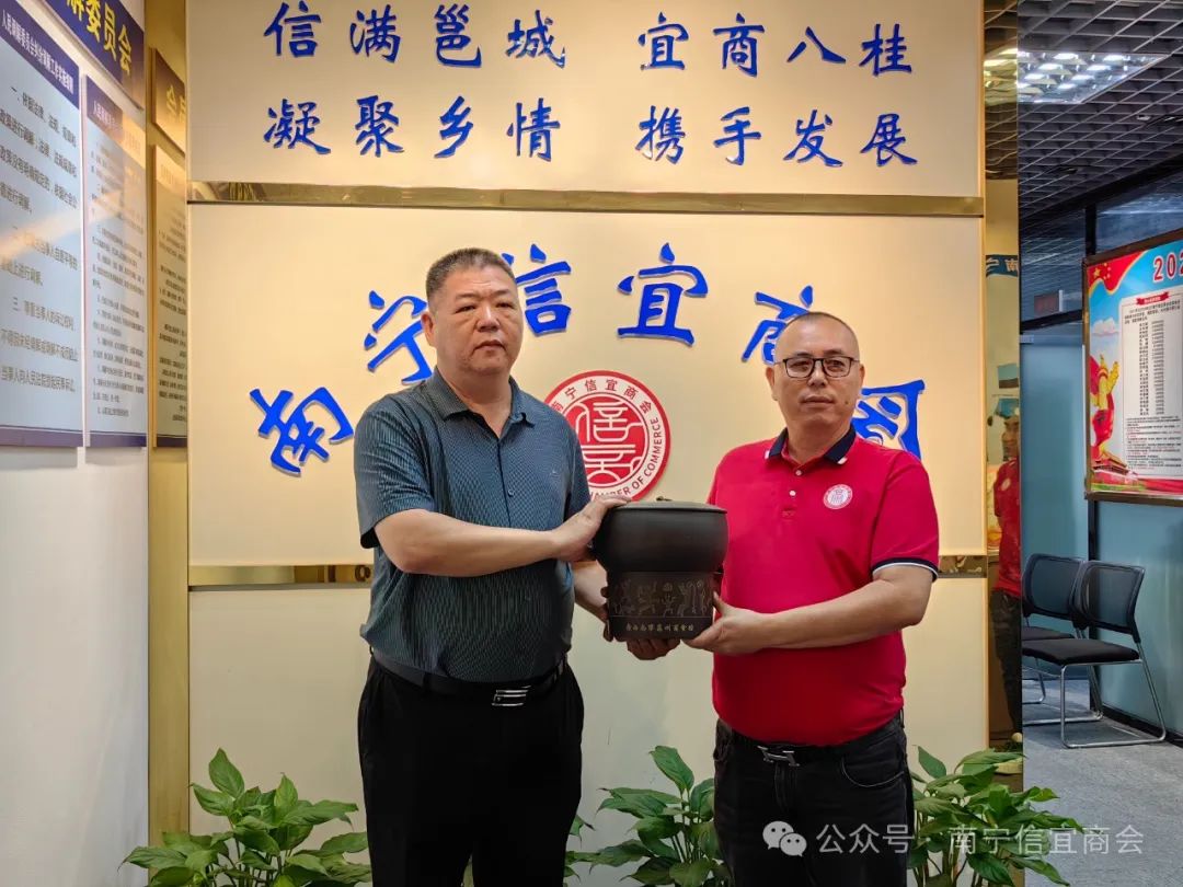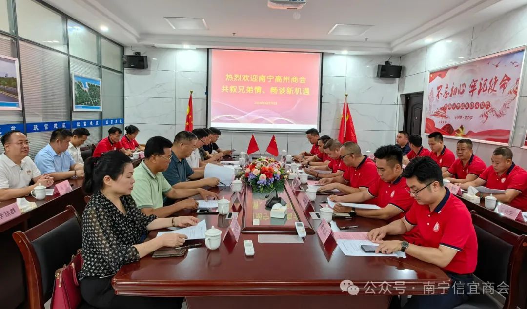 高州商会会长吴建武表示:非常高兴来到南宁信宜商会走访交流。高州、信宜两市地缘相邻,语言相同,人文相通,同饮一江水,同属广东一部分。广东乡情是我们永恒的纽带,只有紧密团结起来,才能凝聚成强大的力量,才能实现优势互补和资源共享,才能把各自的企业越做越大,越做越强,才能实现商会和会员企业高质量发展。吴会长还热情邀请信宜商会会员到高州商会参观走访,加强双方交流互动。