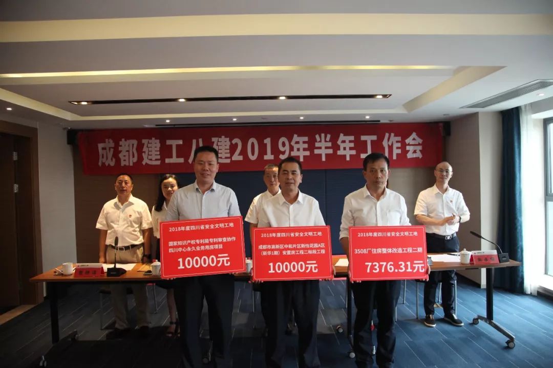 会议还传达了成都建工集团2019年半年工作会议精神;对6个荣获2018年度成都市“安全文明工地”的项目部、3个荣获四川省省级“安全生产文明施工标准化工地”的项目部,2个荣获2018年度成都市“绿色施工工地”的项目部,4个荣获成都市优质工程“芙蓉杯”奖的项目部以及5个荣获四川省优质工程“天府杯”奖的项目部进行了表彰;财务核算部、谢斌项目部代表在会上进行交流发言。