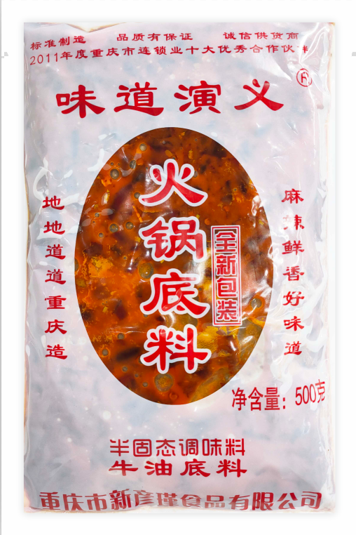 重庆市新彦瑾食品有限公司始创于2004年,工厂坐落于重庆市江津区德感工业园区,是一家具备研发、生产、销售和贸易的综合型制造企业。公司自成立以来,打造的主要产品包括君旺牌味道演义牌鸡精、鸡粉、味精等系列调味品,由我公司独家配方生产的味道演义牌半固态调味料牛油、清油系列火锅底料,汤系列产品。以口感纯正,配方用料考究,可私人定制等特色,在同行业中倍受信赖和推崇。同时我司的售后服务团队耐心倾听客户反映的问题,热忱为客户提供满意的解决方案是我们追求的目标。