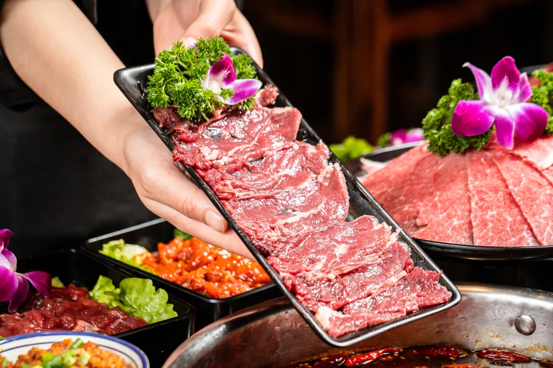 牛肉全部来自于优质的品种,经过严格的挑选和处理,确保每一片肉都新鲜、健康、口感鲜美。所有肉品在店都是明档鲜切,新鲜看得见,从取肉,到切片,到装盘全程透明化接受客官们的监督。