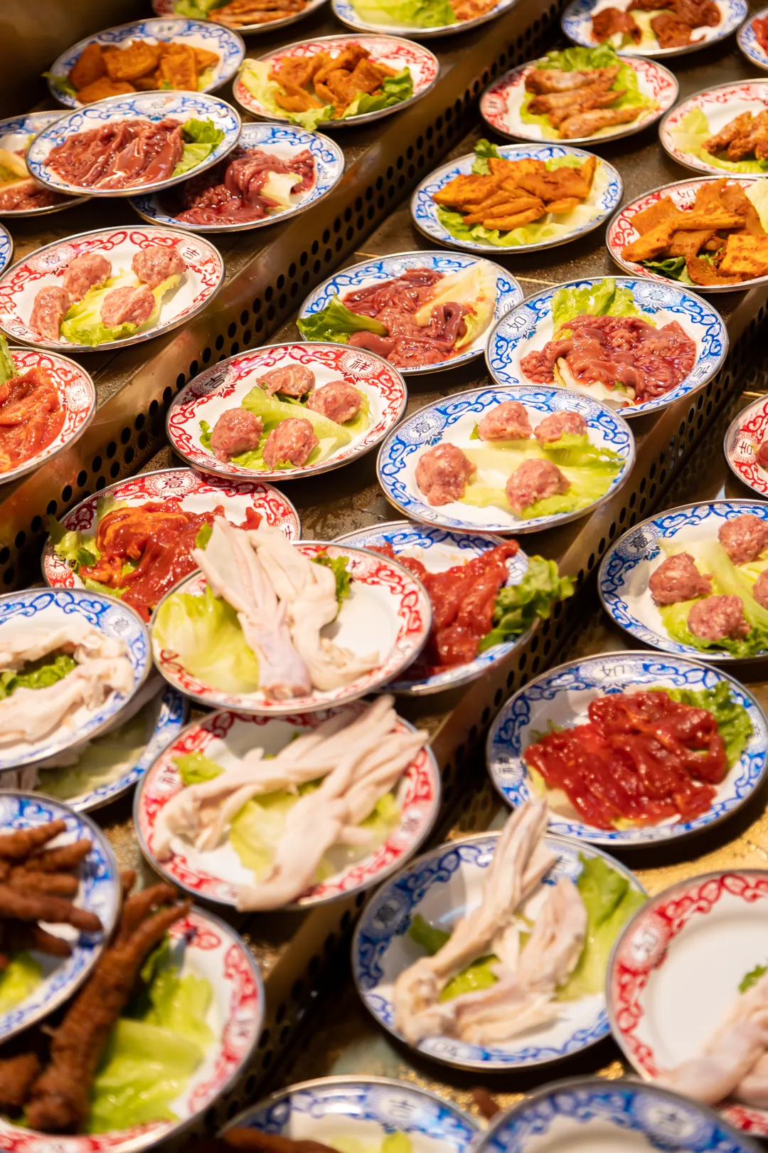 除了主打的鲜切牛肉,鲜切羊肉,千层肚,火箭鱿鱼,虎皮鸡爪,肥肠......超多配菜任意拿,自由吃!简直不要太满足!