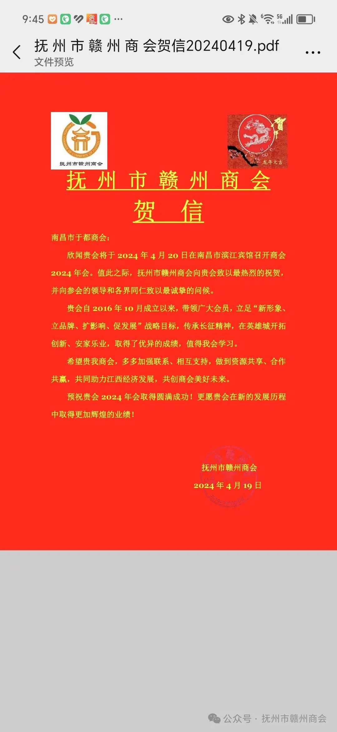“雩山连绵、赣水情深”。4月20日晚,南昌市于都商会2024年年会在江西南昌滨江宾馆隆重召开。应南昌市于都商会邀请,抚州市赣州商会常务副会长兼换届小组组长廖天宝、党支部书记兼秘书长刘小东、监事长罗小琴、副会长郭自生、廖兴平赴昌参会,送上商会对南昌市于都商会的美好祝福。