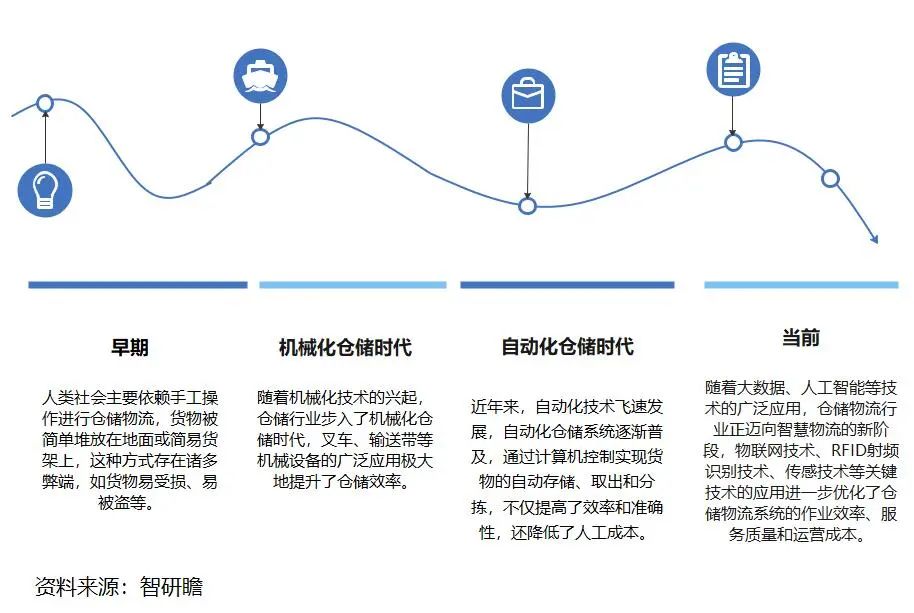 仓储物流行业的发展历程历经了多个重要阶段。早期,人类社会主要依赖手工操作进行仓储物流,货物被简单堆放在地面或简易货架上,这种方式存在诸多弊端,如货物易受损、易被盗等。随着机械化技术的兴起,仓储行业步入了机械化仓储时代,叉车、输送带等机械设备的广泛应用极大地提升了仓储效率。然而,这也带来了机械设备维护成本高、操作人员需专业技能等新问题。近年来,自动化技术飞速发展,自动化仓储系统逐渐普及,通过计算机控制实现货物的自动存储、取出和分拣,不仅提高了效率和准确性,还降低了人工成本。当前,随着大数据、人工智能等技术的广泛应用,仓储物流行业正迈向智慧物流的新阶段,物联网技术、RFID射频识别技术、传感技术等关键技术的应用进一步优化了仓储物流系统的作业效率、服务质量和运营成本。从行业现状看,我国仓储物流行业持续发展,通用仓库面积不断增长,尤以东部地区发展最为迅猛。同时,仓储物流技术也在不断进步,自动化立体库逐渐成为制造业和商业领域推崇的最佳仓储解决方案。