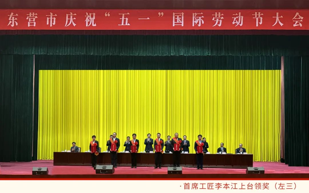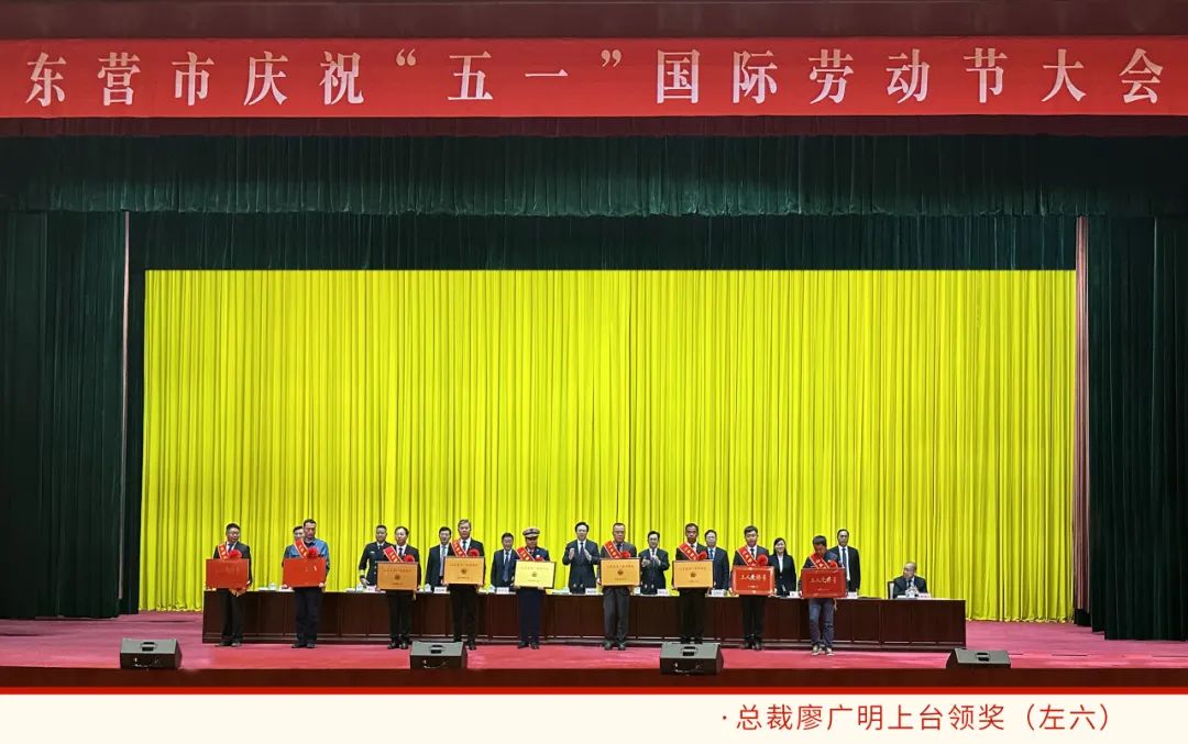 4月29日,东营市庆祝“五一”国际劳动节表彰大会在东营会堂召开。东营市委书记杨国强、市长陈必昌等领导出席会议并颁奖。富海控股荣获“山东省五一劳动奖状”,总裁廖广明作为公司代表上台领奖,首席工匠李本江荣获“山东省五一劳动奖章”并上台领奖。