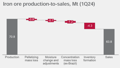 图3:淡水河谷产销缺口归因(百万吨)