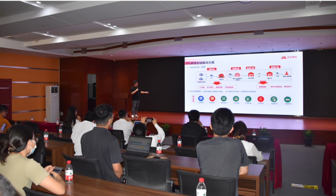 随后,京东物流供应链事业部中珠江销售负责人周洛杭为企业代表分享京东物流一体化供应链解决方案,详细介绍京东物流全球网络覆盖、智能仓储系统、高效配送服务等优势,为商家提供了全方位的物流解决方案,并为企业带来合作优惠政策。