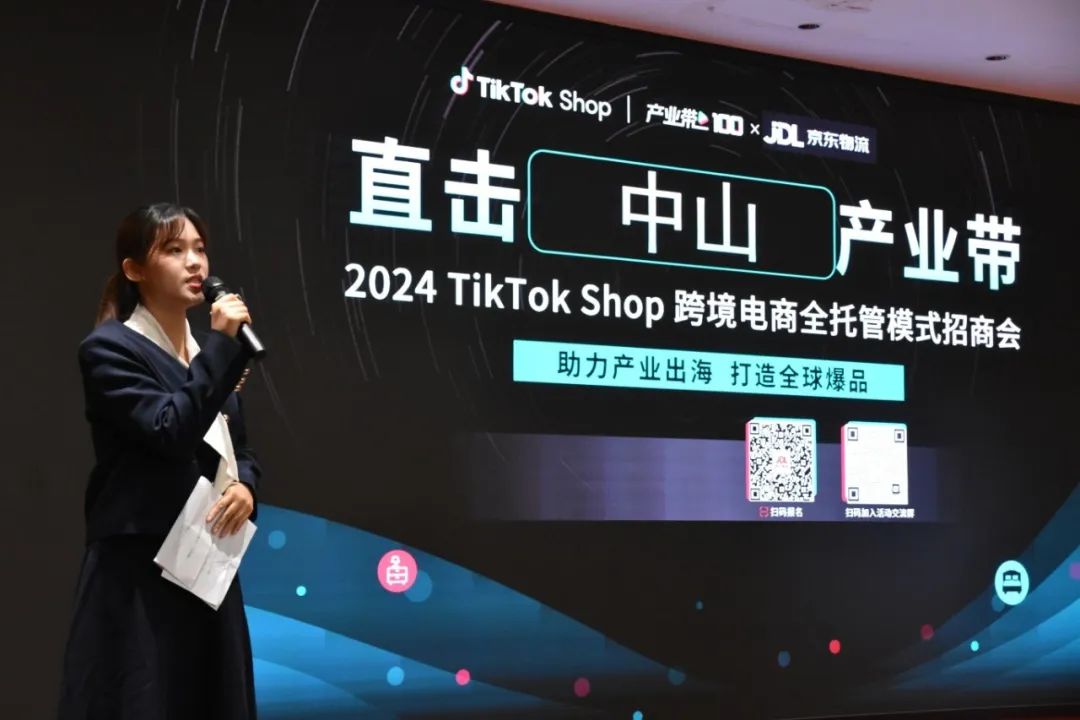 为助力黄圃产业出海,打造全球爆品,推动产业与贸易深度融合,4月25日下午,黄圃镇工商联(商会)与京东物流联合主办“2024 TikTok Shop 跨境电商全托管模式招商会”,本次活动邀请TikTok Shop、京东物流及中国人保等专家亲临现场分享,共吸引黄圃镇超100家企业派员参加。