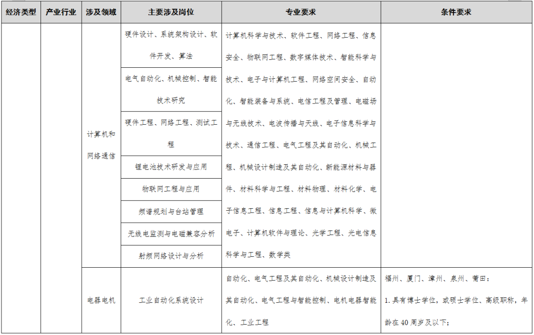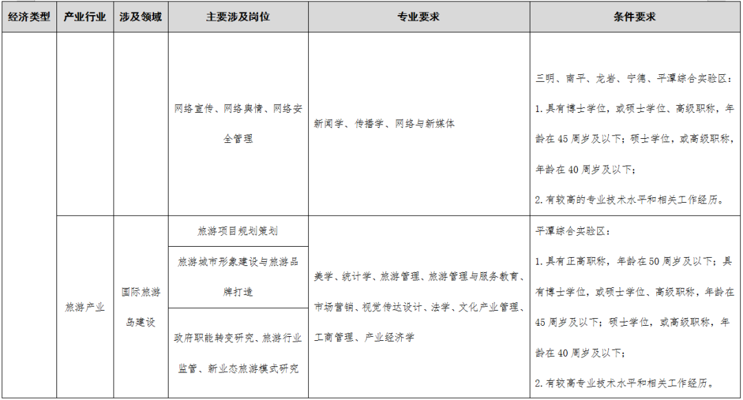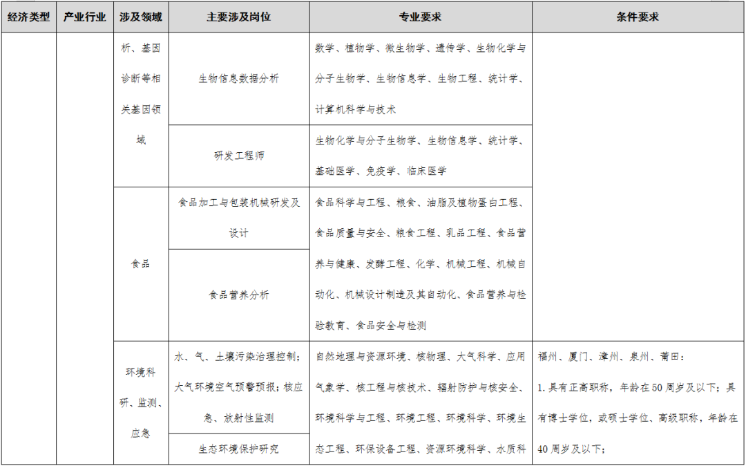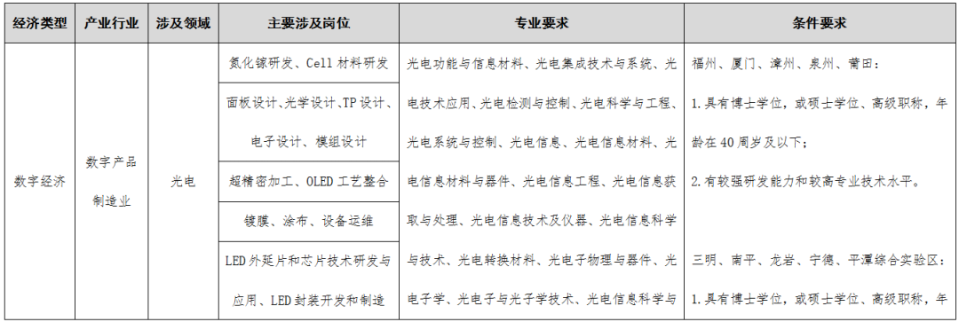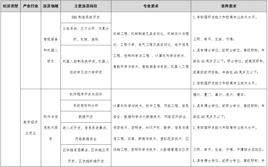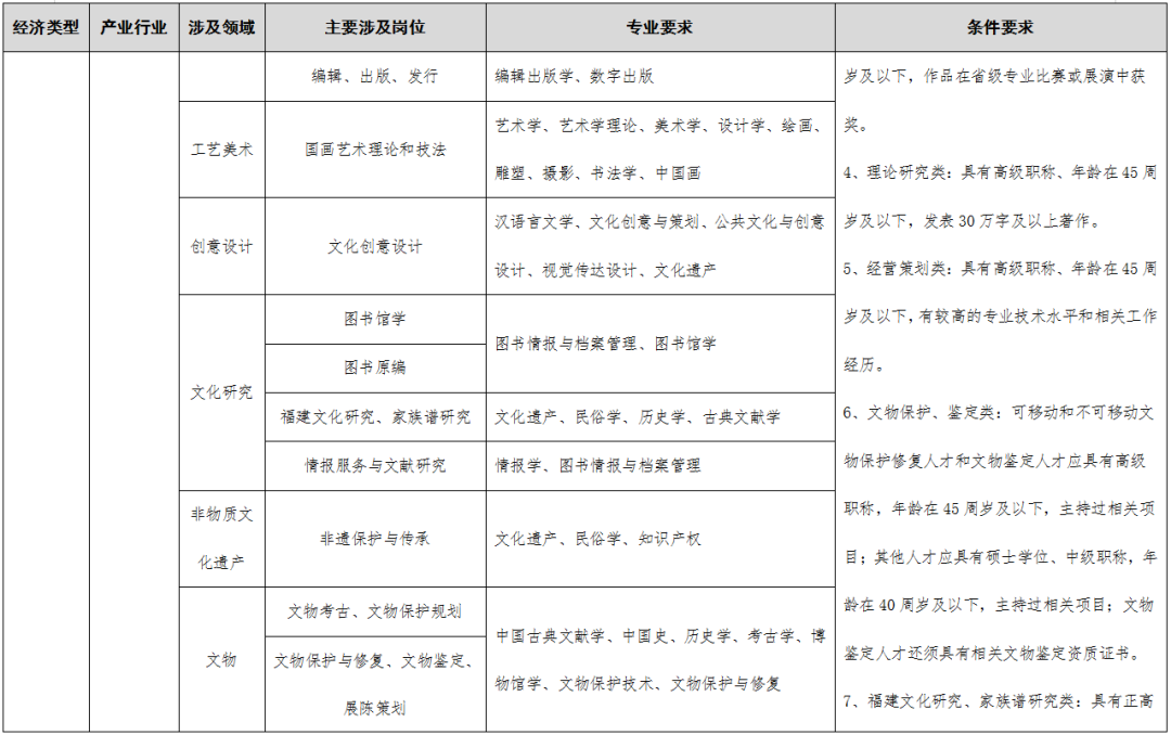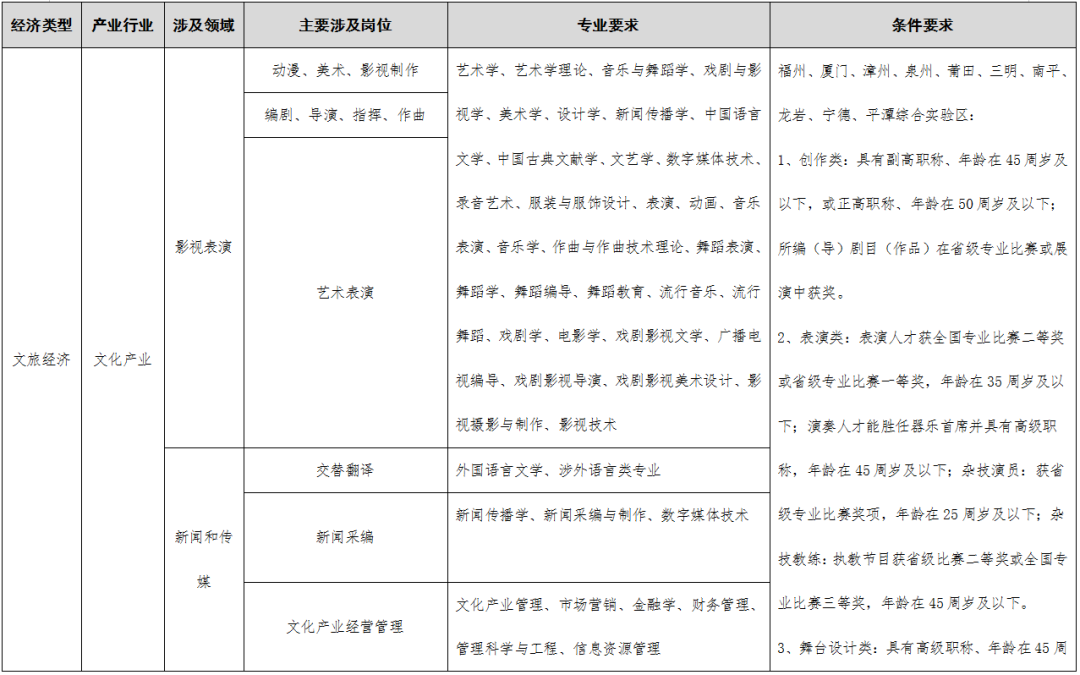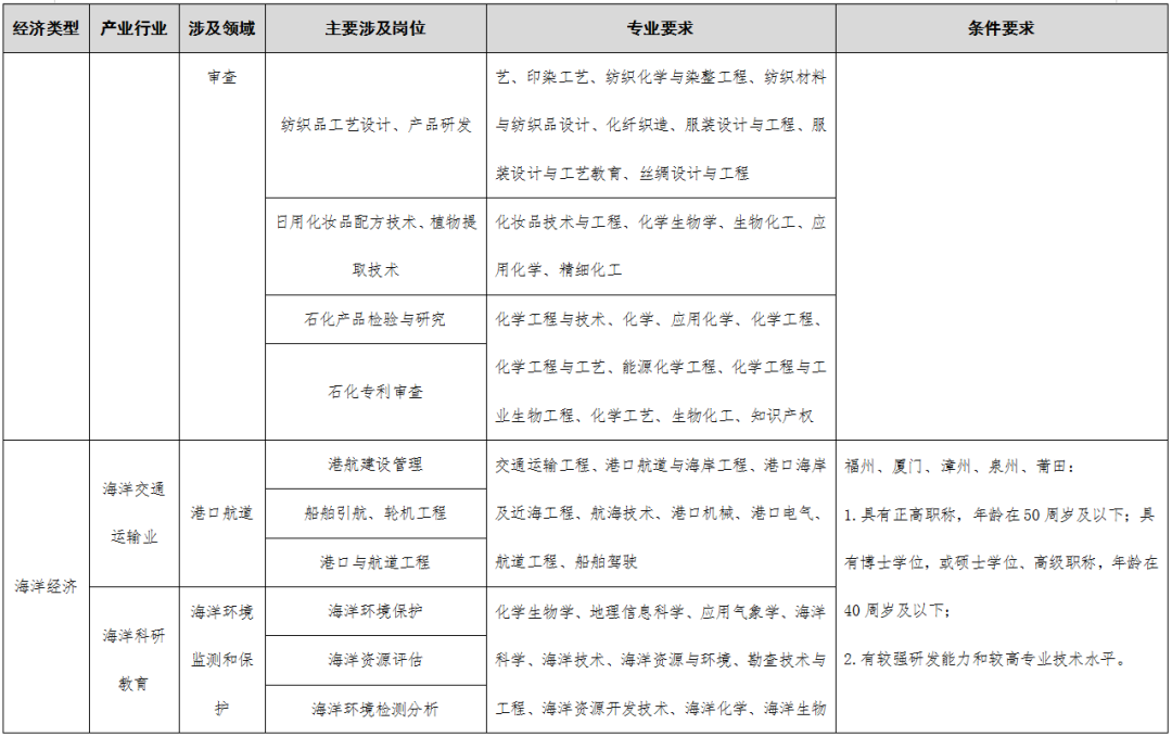 >>>点击查看《福建省2023-2024年度紧缺急需人才引进指导目录》编制说明;“四大经济”涉及的产业领域;引进人才确认工作实施细则