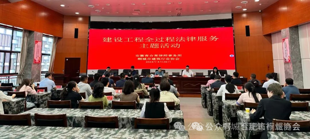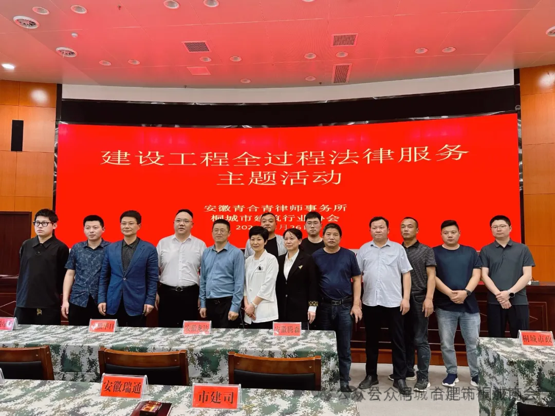 4月26日下午,商会常务理事单位安徽青合青律师事务所与桐城市建筑行业协会共同举办建设工程全过程法律服务主题活动。活动由商会常务理事、安徽青合青律师事务所管委会副主任尹斌主持。