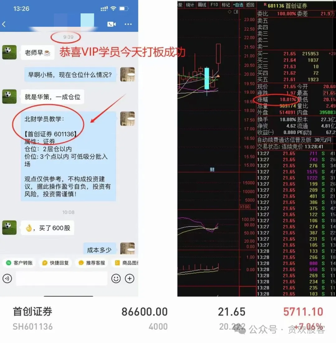 周五早带VIP学员打板布局 首创证券,成功打板 涨停,7个点到手