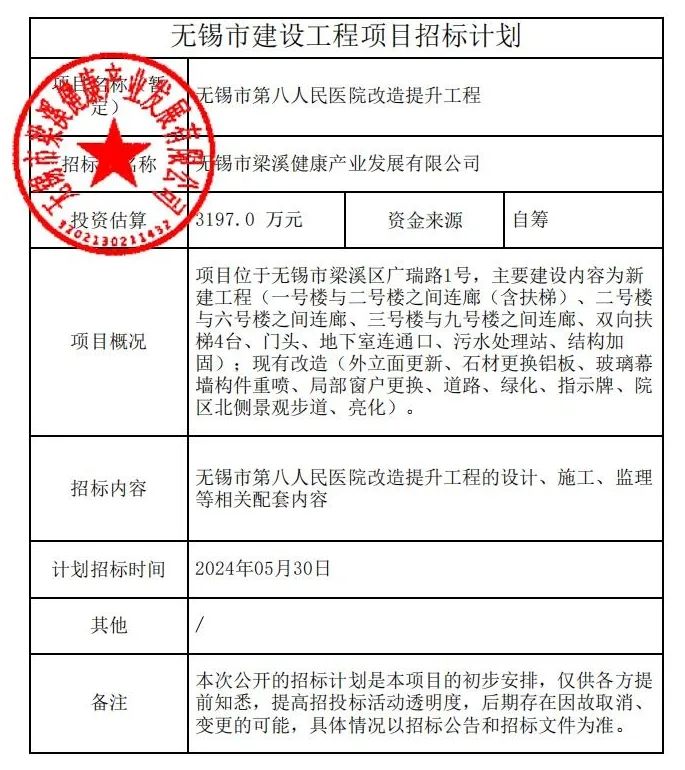 项目位于无锡市梁溪区广瑞路1号,主要建设内容为新建工程(一号楼与二号楼之间连廊(含扶梯)、二号楼与六号楼之间连廊、三号楼与九号楼之间连廊、双向扶梯4台、门头、地下室连通口、污水处理站、结构加固);现有改造(外立面更新、石材更换铝板、玻璃幕墙构件重喷、局部窗户更换、道路、绿化、指示牌、院区北侧景观步道、亮化)。