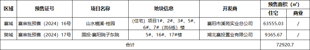 其二为国投襄阳院子·东院,项目位于樊城区中原路以南、振华路以西、紫贞公园路以北。此次5#、16#、17#楼取得预售许可证,共批得住宅预售面积9365.67㎡。