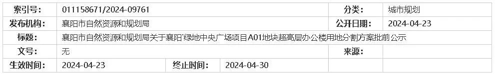 近日,绿地集团襄阳置业有限公司申请将A01地块东南侧超高层办公楼所在用地及地上附着物进行分割转。分割后东南侧超高层办公楼占地面积8380平方米,建筑面积58854平方米,剩余土地面积53392平方米。【详情阅读】