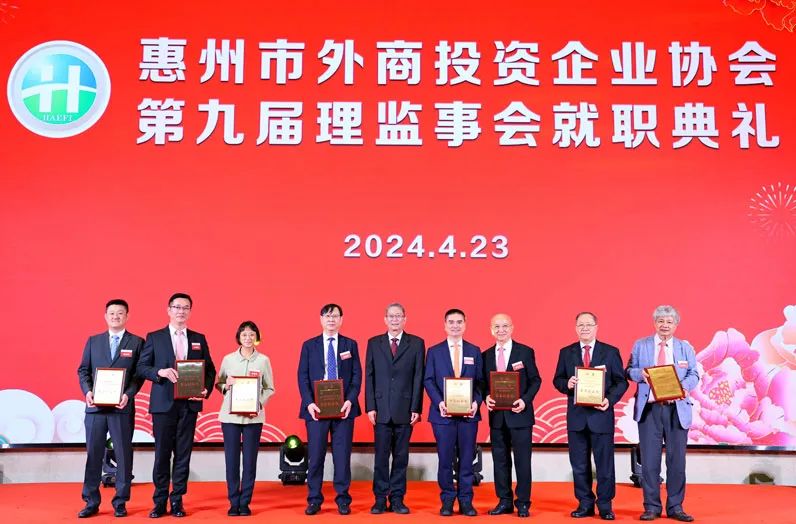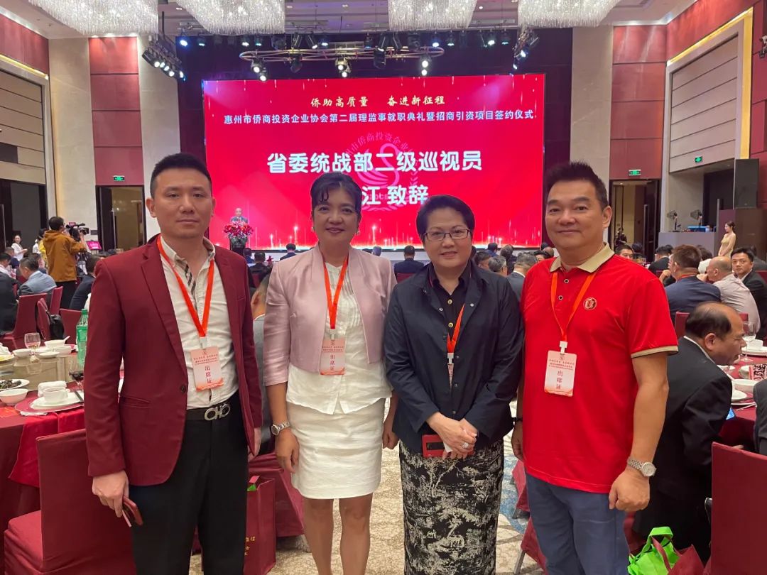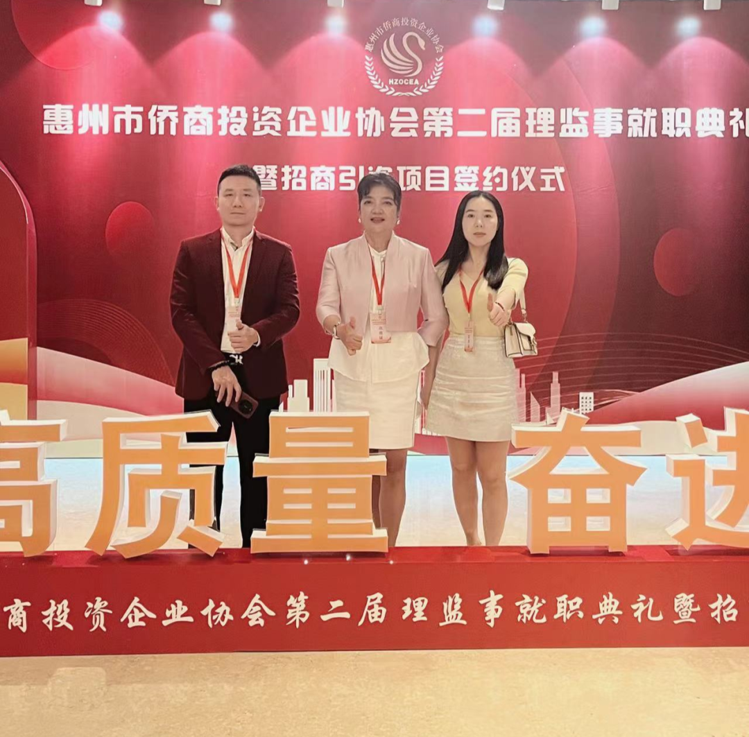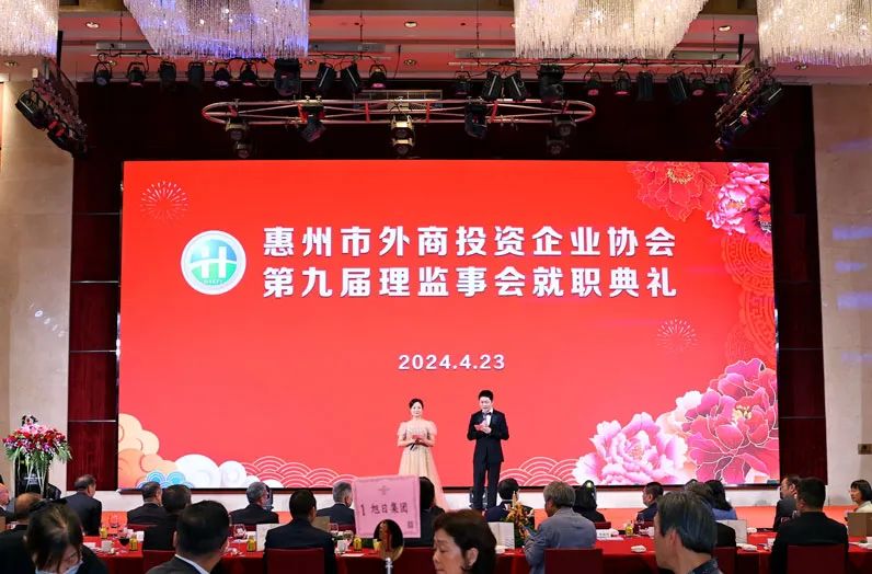 4月23日,惠州市外商投资企业协会举行第九届理监事就职典礼。广东省商务厅副厅长、省外商投资企业协会会长朱小军,惠州市政府副市长李俊玲,市外商投资企业协会新任会长吴惠城出席并致辞。市直顾问部门领导,各县(区)领导,友好商(协)会负责人,企业会员代表等600多人出席了就职典礼。深圳市侨商国际联合会常务副会长区绮文应邀出席并致贺。