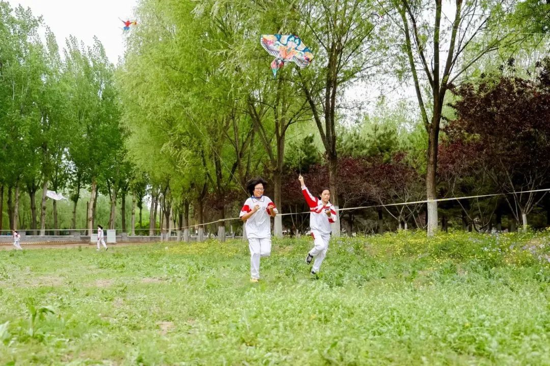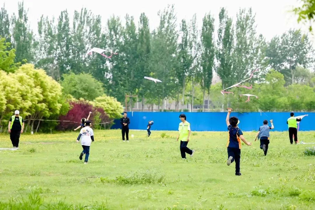 风筝放飞体验板块收获了当天最多的欢笑声。同学们如飞鸟般飞奔在茵茵草地上,大家尽情奔跑,一手持线轴一手拽着风筝线,手中的风筝在他们的奔跑与欢呼中,飞上了蓝天。形态各异的风筝在空中翩翩起舞,宛如一只只灵动的蝴蝶,又似自由翱翔的鸟儿,更像一飞冲天的火箭。学生们的目光紧追着自己的风筝,脸上写满了兴奋与惊叹。在风筝接力体验游戏中,学生们将风筝放在胸前,奋力向前奔跑,在保证速度的同时也要注意风筝不能掉落。这一刻,同伴的加油声随着风声一同灌入孩子们的耳朵,在孩子们的身体里注入团结友爱的力量。“真开心!活动不仅让我们了解到了更多风筝的文化和历史,也让我们在制作和放飞风筝的过程中感受到了满满的快乐。”同学们个个兴奋又满足,意犹未尽地说。