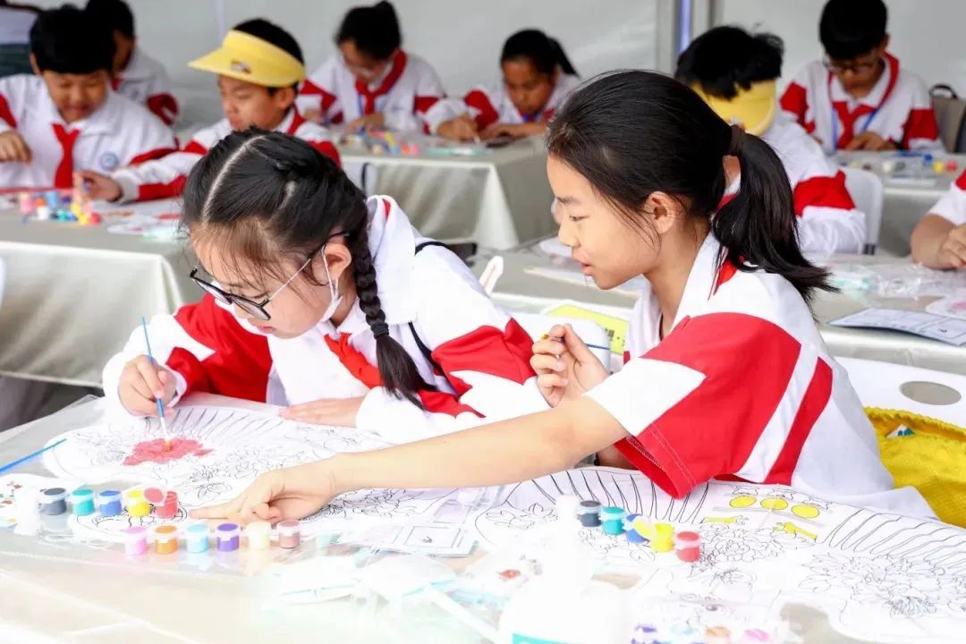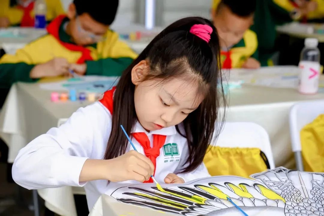 活动中,北京市东城区风筝协会走进现场,为学生们介绍风筝的起源、历史、制作工艺和文化内涵。同时,结合现场各式各样的风筝作品,让学生们更加直观地感受这一传统文化的魅力。在风筝DIY板块,学生们各自领取到一个空白风筝,在专业老师指导下,大家快速掌握风筝制作技巧,随后充分发挥想象力,迫不及待地绘制着属于自己的风筝。或彩笔描绘,或淡墨渲染,一笔一画,一色一调,学生们相继在风筝上绘出心中的那抹色彩与图案,一个个绚丽多彩,形态各异的风筝诞生了。
