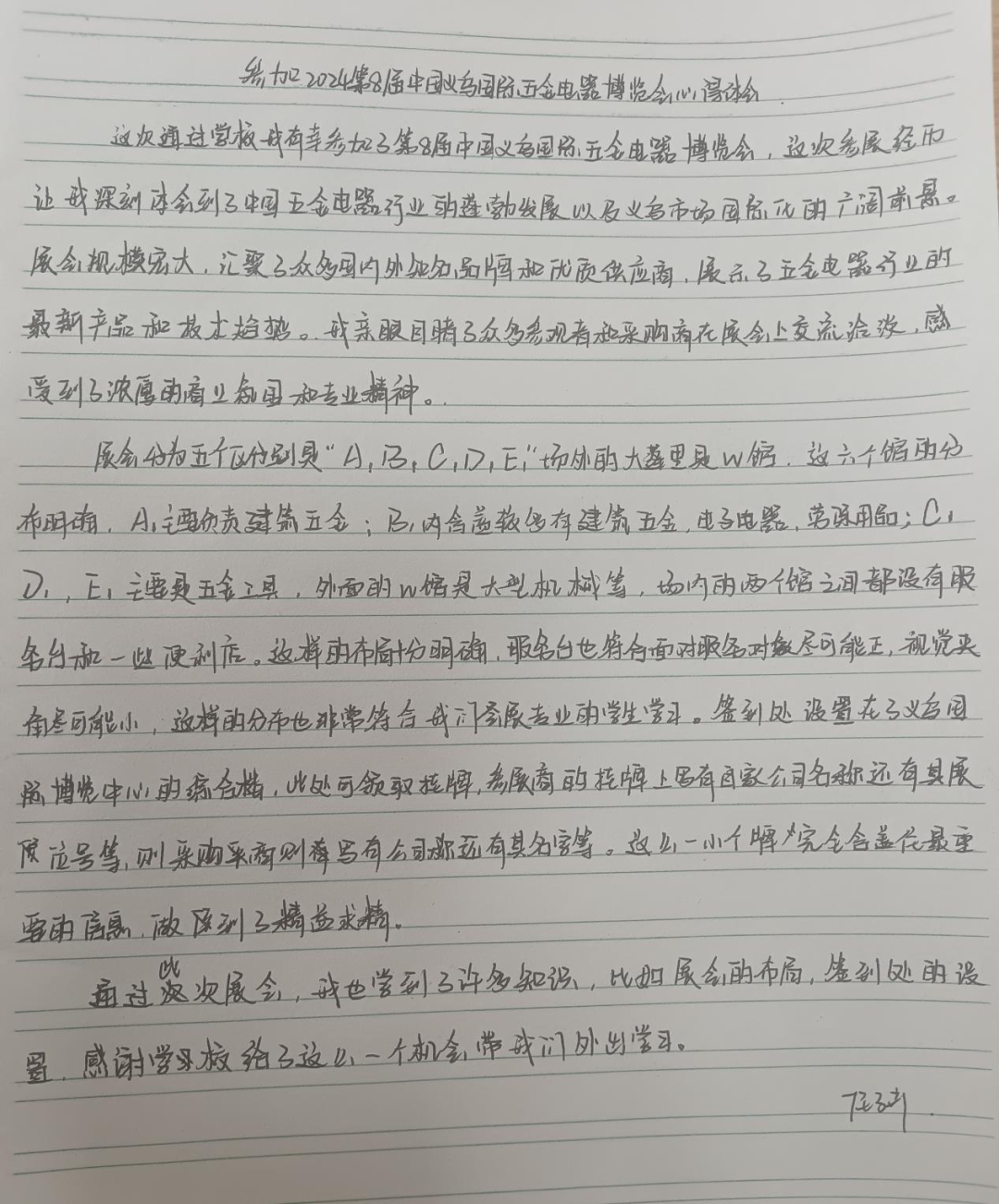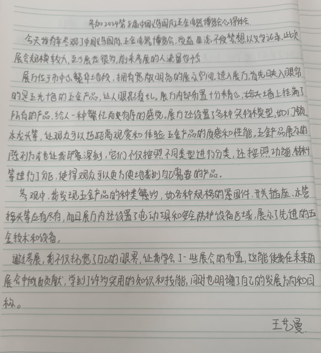 活动期间,同学们还参加了2024中国义乌机械及机电产品等活动。