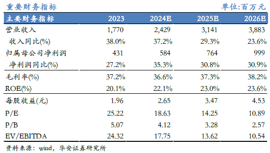 考虑到光伏行业整体增速下行及验收影响,我们对前次预测水平小幅下调,预测公司2024-2026年营业收入分别为24.29/31.41/38.83亿元(调整前24-25年为26.78/37.58亿元),归母净利润分别为5.84/7.64/9.99亿元(调整前24-25年为6.23/8.93亿元),以当前总股本2.20亿股计算的摊薄EPS为2.65/3.47/4.53元。公司当前股价对2024-2026年预测EPS的PE倍数分别为19/14/11倍,考虑到公司作为工业电源国产替代领军者,半导体、充电桩等新业务成长逻辑清晰,维持“买入”评级。