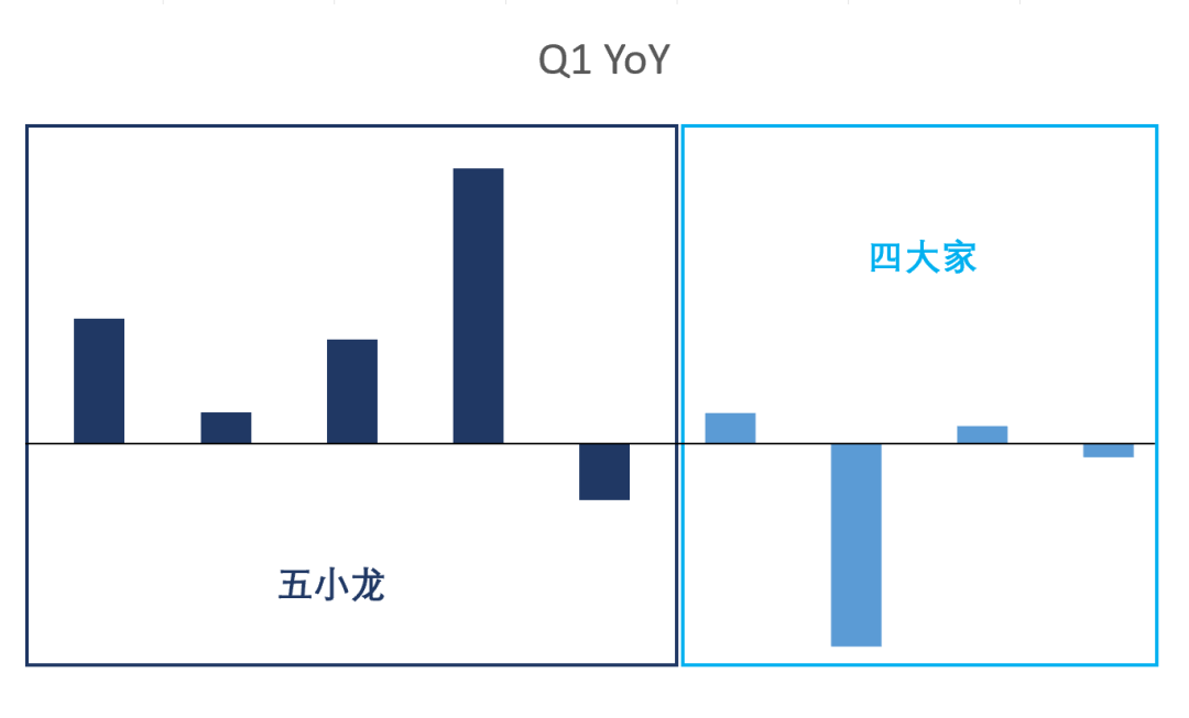 从Q1各个家的增速来看,国内五小龙的增速显然是远远超过进口的四大家,当然一方面是基数不同,一方面也是指标不一样,不管如何,YOY还是可以体现出潜在的发展情况的。