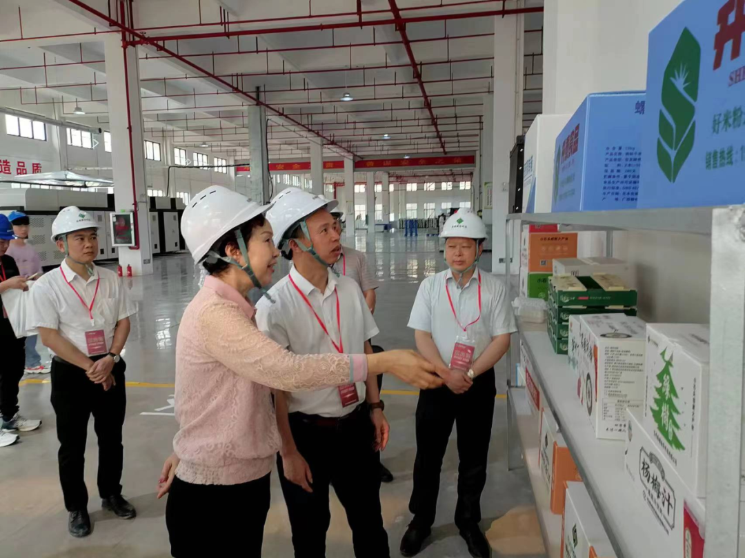 在了解到绿树公司目前中空板包装箱产品主要销往外省市市场及即将拓展海外市场的情况后,现场指示市政府相关部门和矿投集团尽快邀请金融机构、农副产品生产企业共同给绿树公司产品做专题推荐会,同时要求矿投集团牵头,在贺州市农