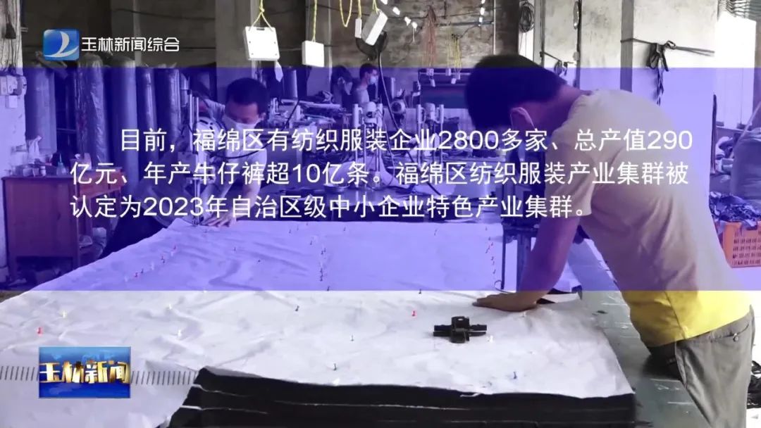 目前,福绵区有纺织服装企业2800多家,总产值290亿元,年产牛仔裤超10亿条。福绵区纺织服装产业集群被认定为2023年自治区级中小企业特色产业集群。