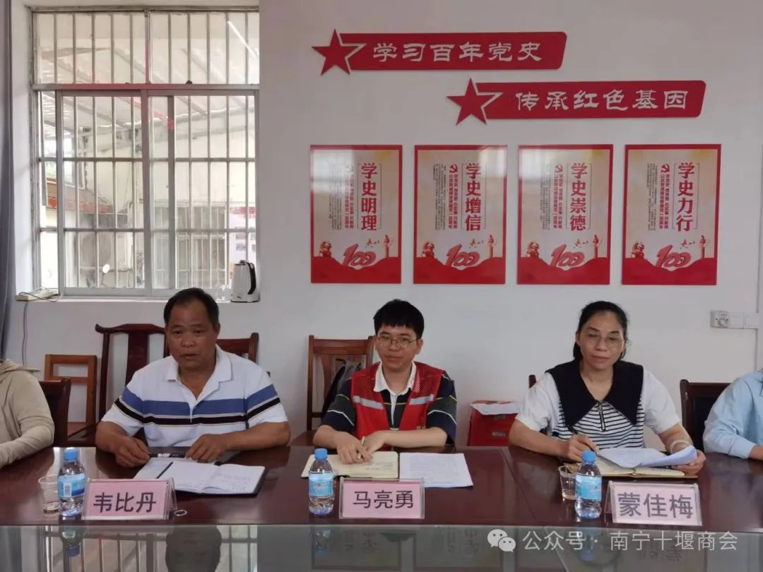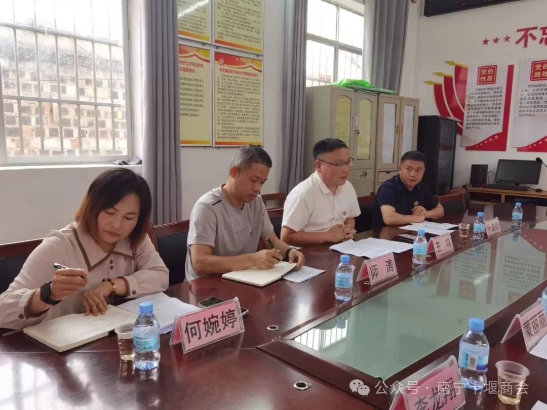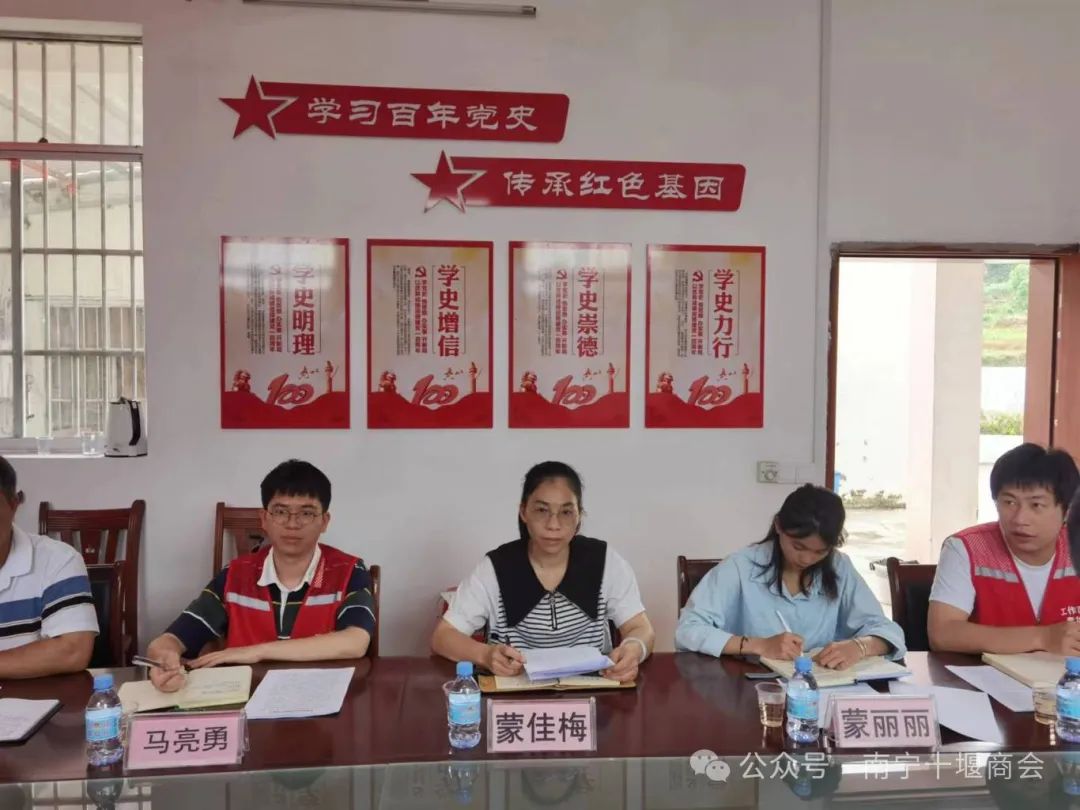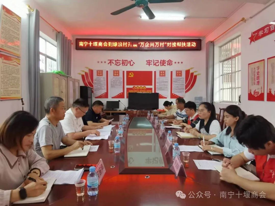 为响应国家乡村振兴战略号召,积极参与“万企兴万村”行动,充分发挥商会企业资源与优势,助力我会“万企兴万村”结对帮扶村——南宁市上林县乔贤镇绿浪村产业兴旺、生态宜居、乡村文明、治理有效、生活富裕,推动乡村全面振兴,2024年4月24日,王鸣会长、一届第九期值班会长团队执行会长师涛、党支部书记杨道锋、执行秘书长何婉婷深入绿浪村开展精准对接帮扶考察调研活动。绿浪村包村领导、副镇长蒙佳梅,驻村第一书记马亮勇,村支书蒙丽丽等干部热情接待。