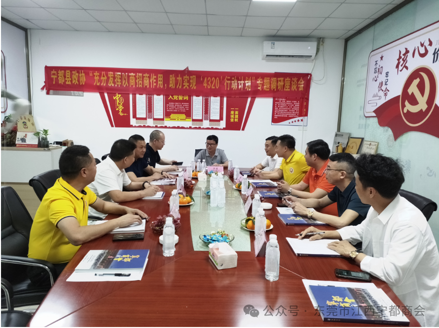 4月28日,宁都县政协“充分发挥以商招商作用,助力实现‘4320’行动计划”专题调研座谈会在东莞市江西宁都商会召开,并举行了政协委员驿站的授牌仪式。此次活动旨在进一步推动以商招商,促进宁都县经济高质量发展,实现“4320”行动计划的各项目标。